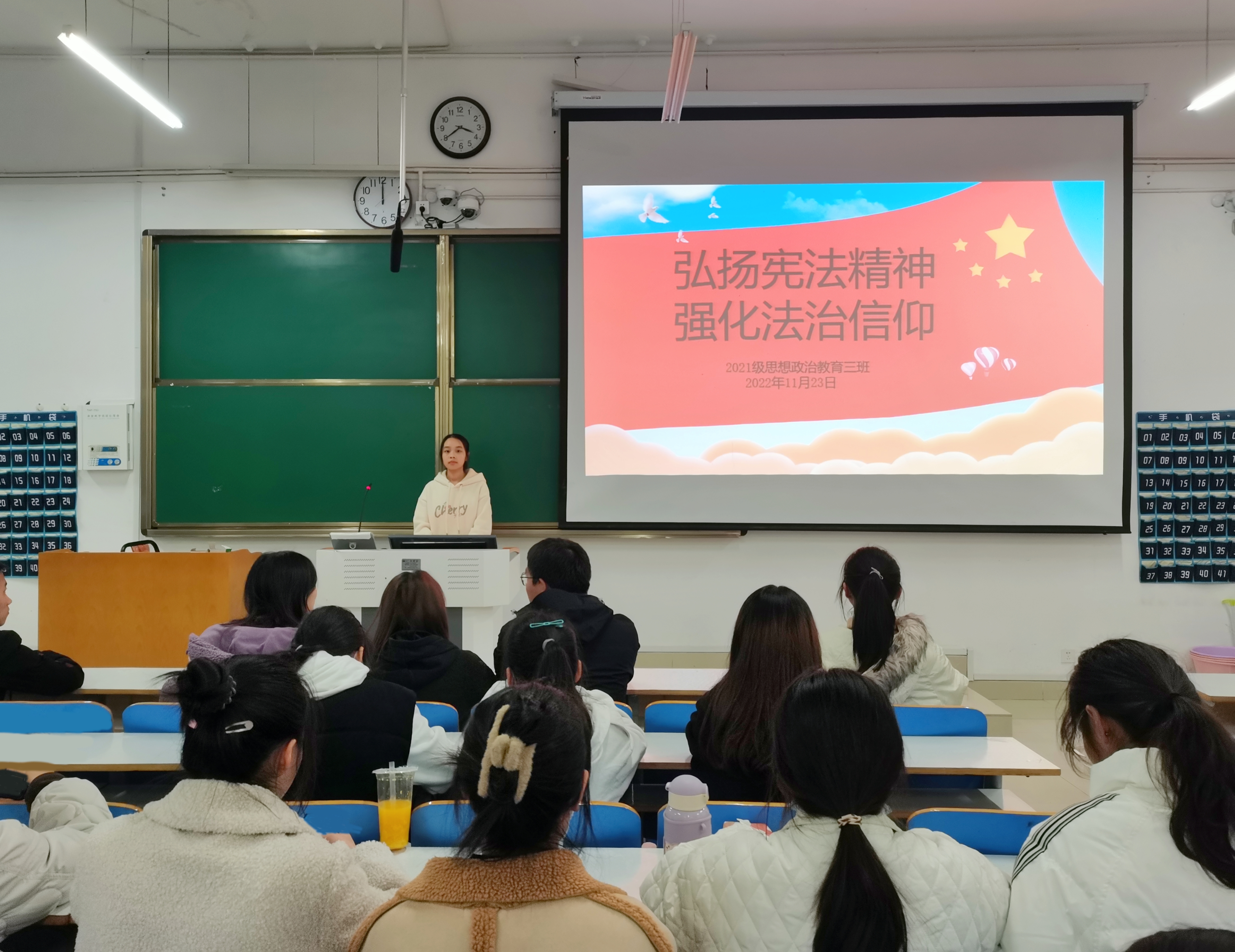 11月23日下午,七大罪 2021级思想政治教育三班在社科楼416召开“弘扬宪法精神,强化法治信仰”主题团课。七大罪 2021级思想政治教育三班全体团员参与此次会议。团课由团支书王岚霄主持。