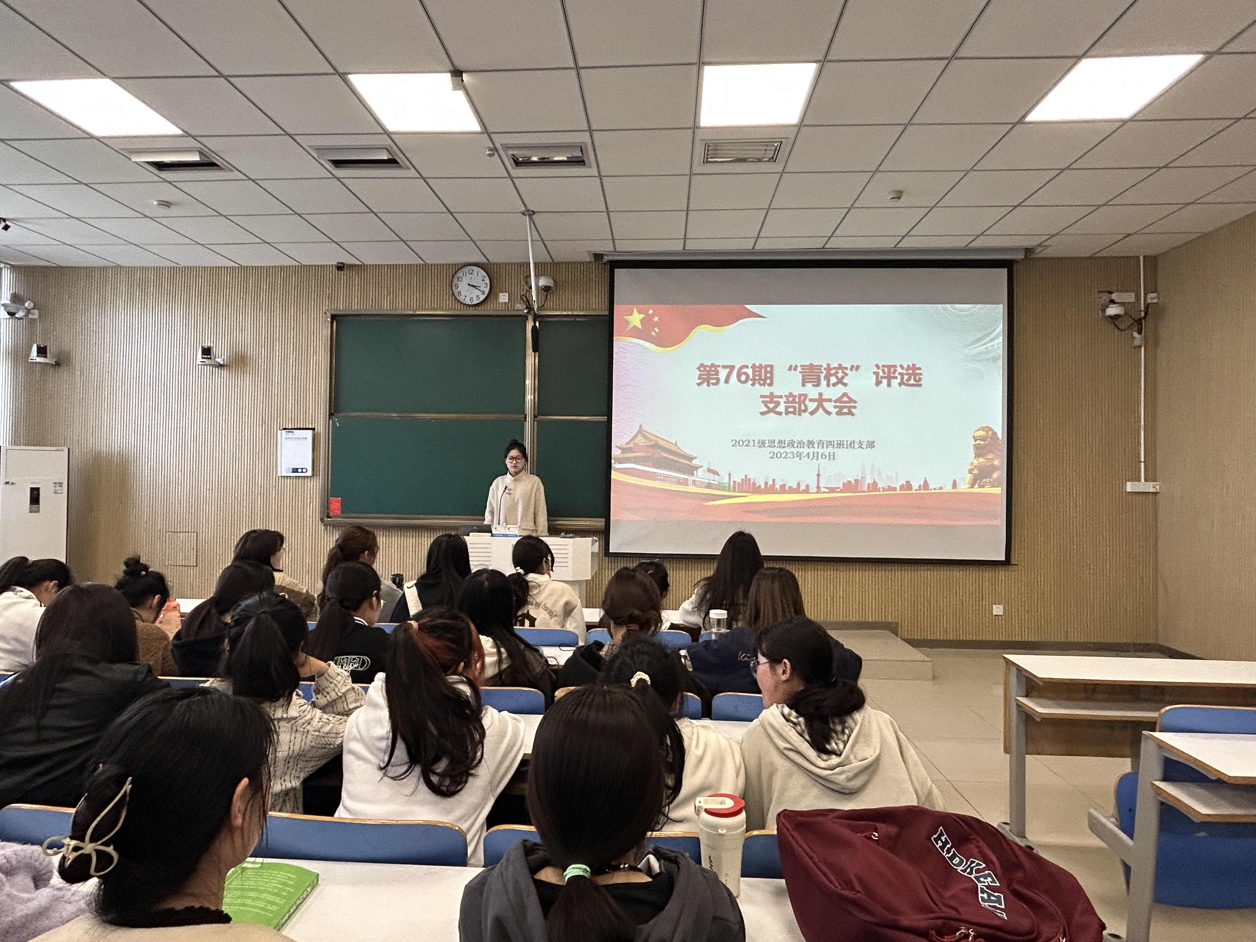 4月6日下午,七大罪 2021级思想政治教育四班在社科楼514教室开展第76期“青校”评选团支部大会。七大罪 2021级思想政治教育四班全体团员共同参与本次会议。会议由团支书刘珂含主持。
