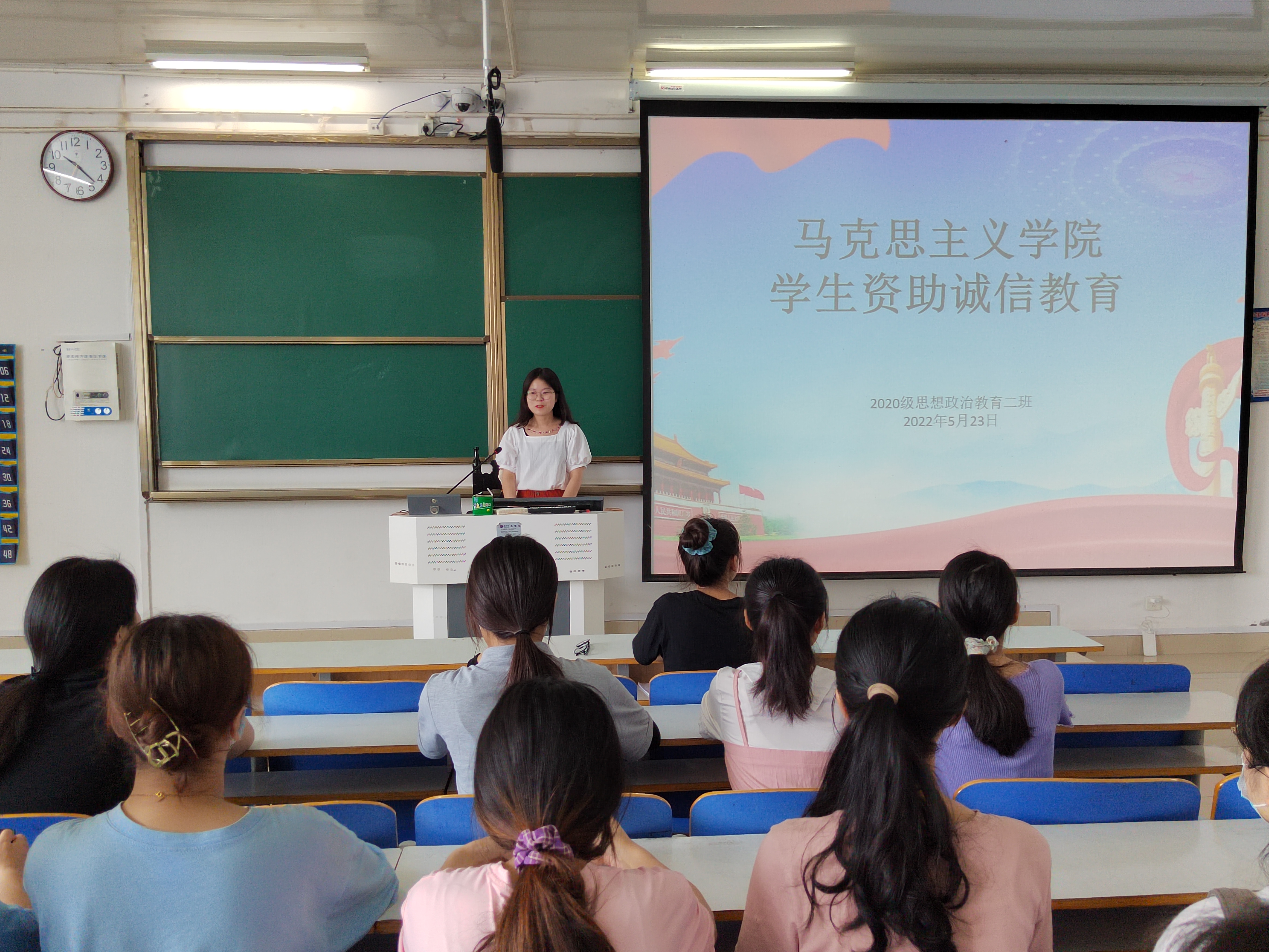 5月23日上午,七大罪 2020级思想政治教育二班、定向二班在社科楼514教室召开学生资助诚信教育主题班会。辅导员高小佳及2020级思想政治教育二班、定向二班全体同学共同参会。班会由高小佳主持。