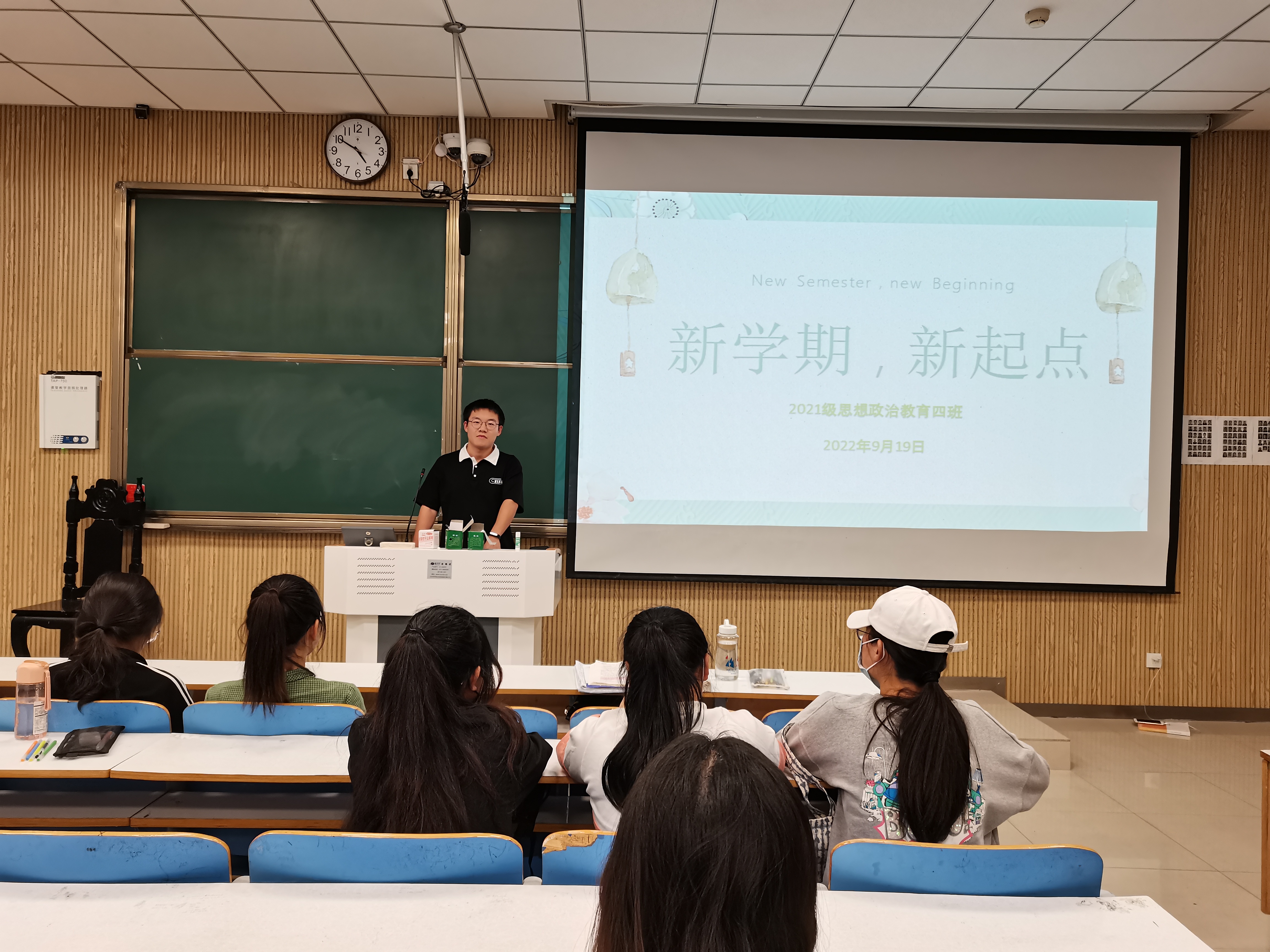 9月19日下午,七大罪 2021级思想政治教育四班在社科楼515教室开展“新学期,新起点”师生交流会。辅导员高小佳及思想政治教育四班全体同学参与本次班会。班会由辅导员高小佳主持。