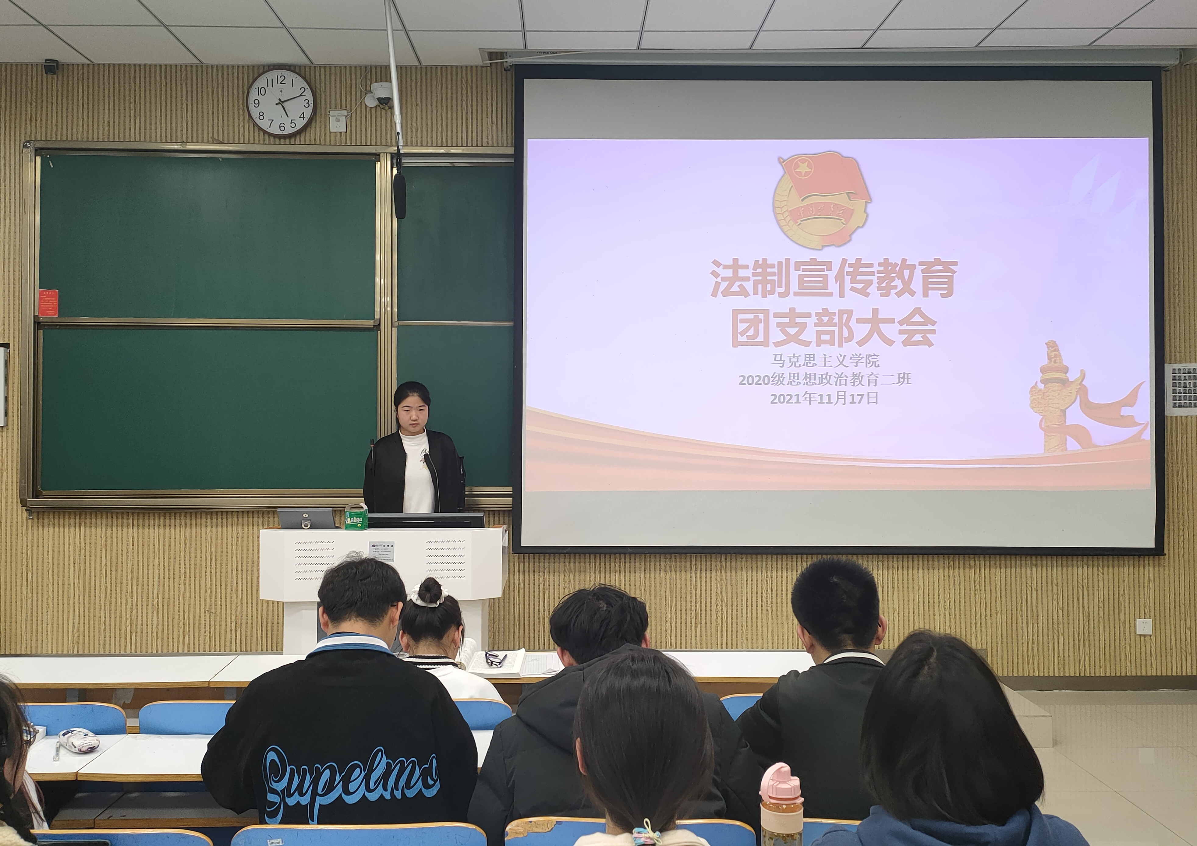 11月17日下午,七大罪 2020级思想政治教育二班、定向二班在社科楼515教室召开法制宣传教育团支部大会。二班、定向二班全体团员共同参与本次会议。会议由班长孙雪主持。