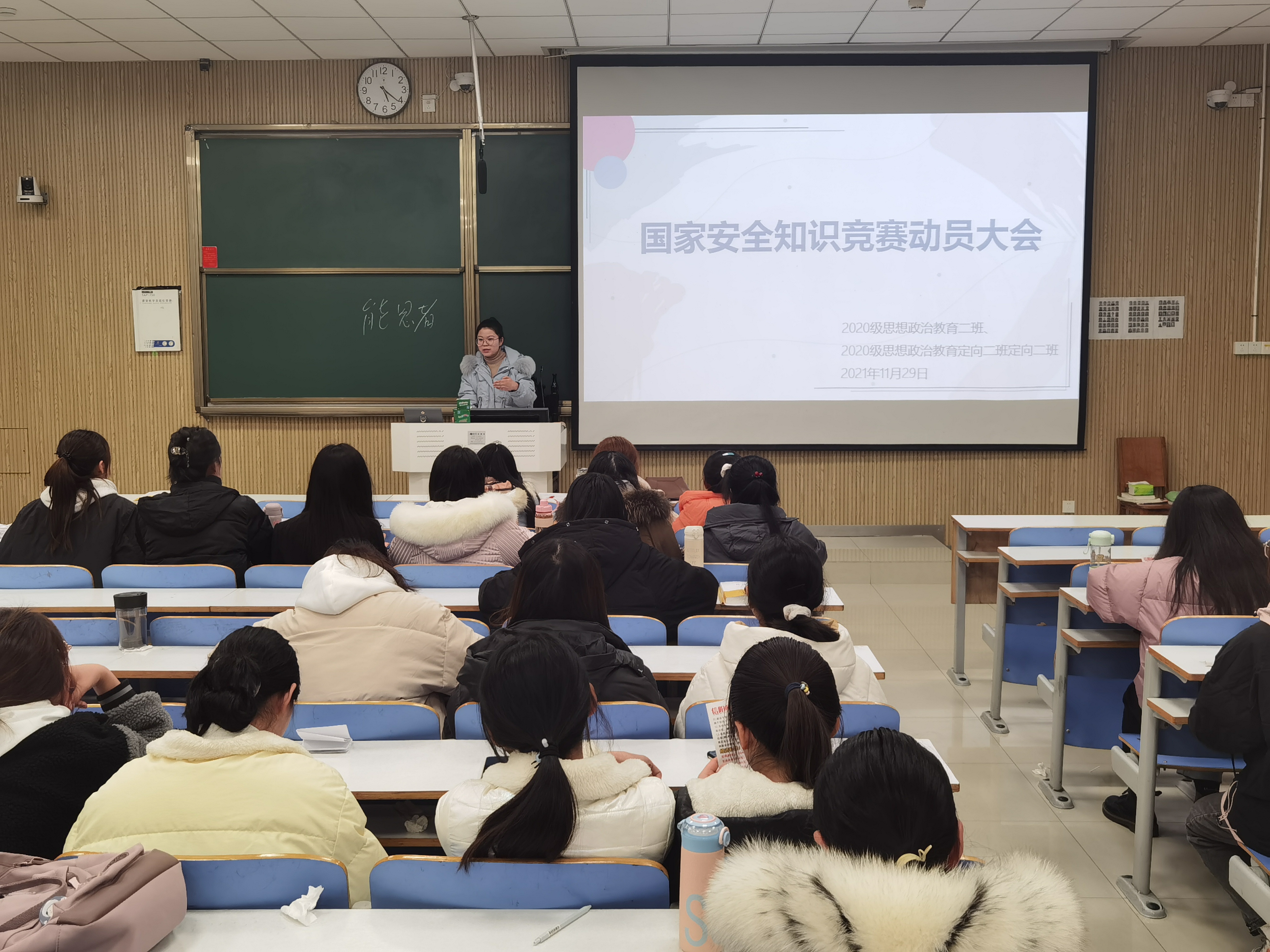 11月29日下午,七大罪 2020级思想政治教育二班、定向二班在社科楼515教室召开国家安全知识竞赛动员大会。辅导员高小佳、2020级思想政治教育二班、定向二班全体同学共同参与本次大会。会议由高小佳主持。