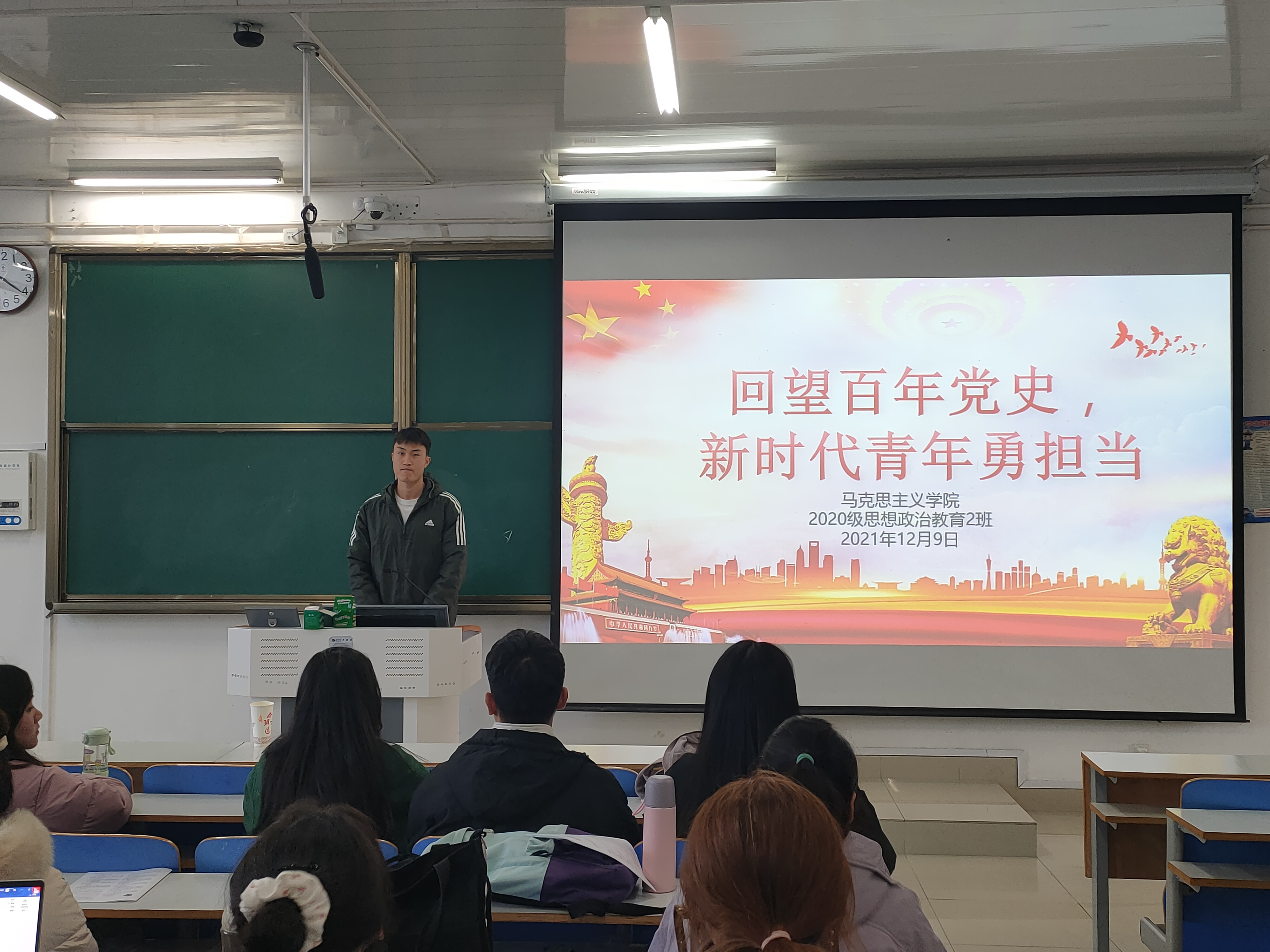 12月9日下午,七大罪 2020级思想政治教育二班、定向二班在社科楼514教室开展“回望百年党史,新时代青年勇担当”主题团课。2020级思想政治教育二班、定向二班全体团员共同参与本次团课。团课由团支书陈宇航讲授。