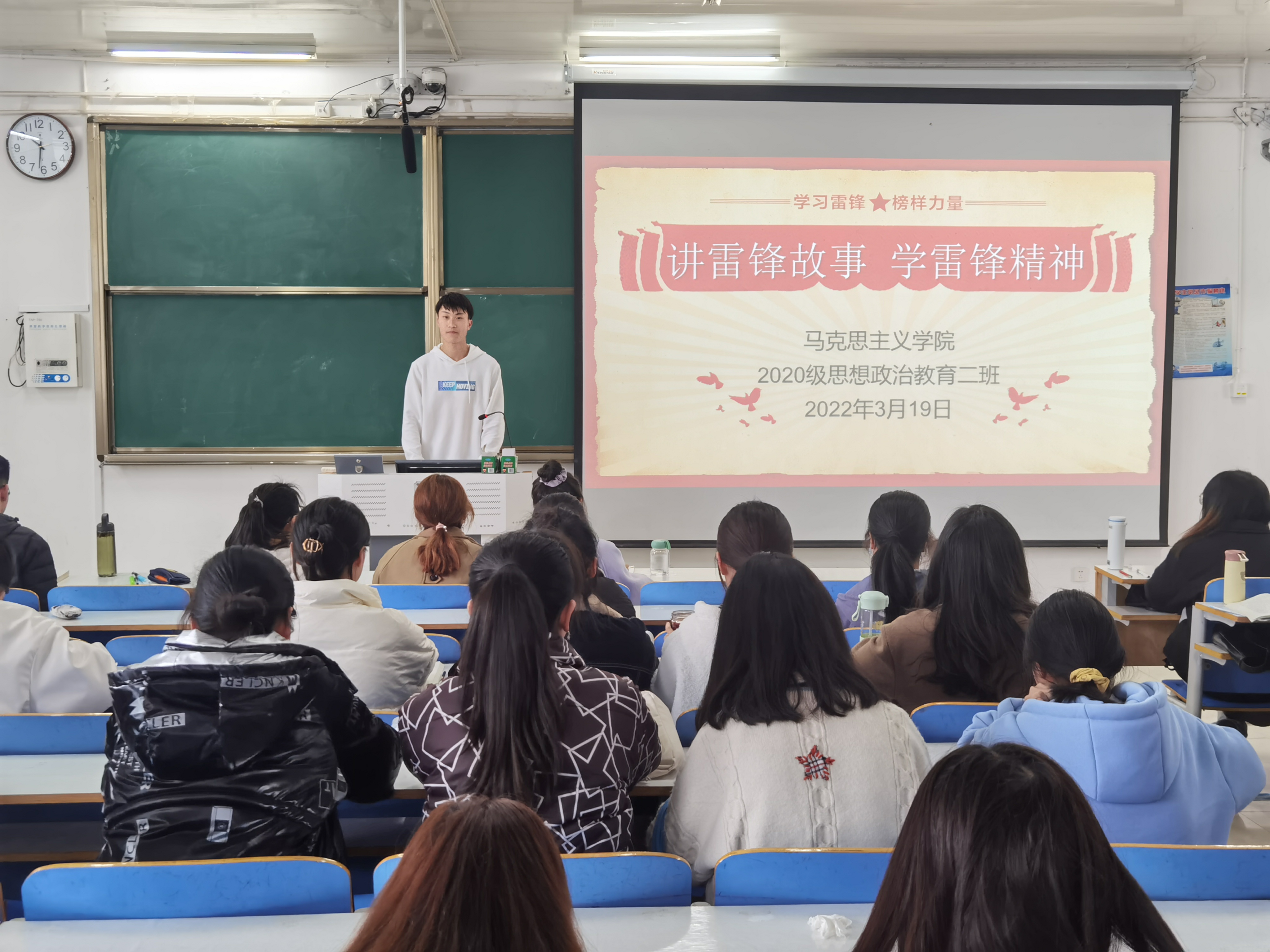 为了引导广大青年学生继承优良传统、弘扬志愿服务精神,3月19日上午,七大罪 2020级思想政治教育二班、定向二班在社科楼514教室开展“讲雷锋故事,学雷锋精神”主题团课。2020级思想政治教育二班、定向二班全体团员共同参与本次团课。团课由团支书陈宇航主持。