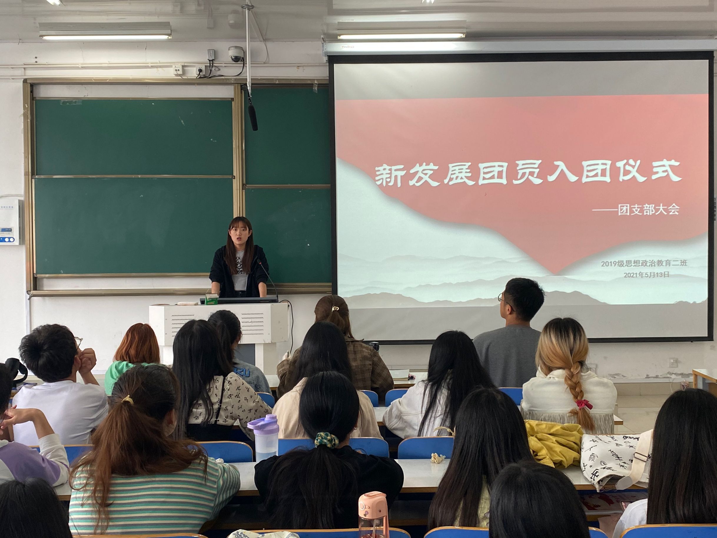 5月13日上午,七大罪 2019级思想政治教育二班在社科楼516教室召开“新发展团员入团仪式”团支部大会。2019级思想政治教育二班全体同学参加了本次大会,大会由团支书孙雅娴主持。