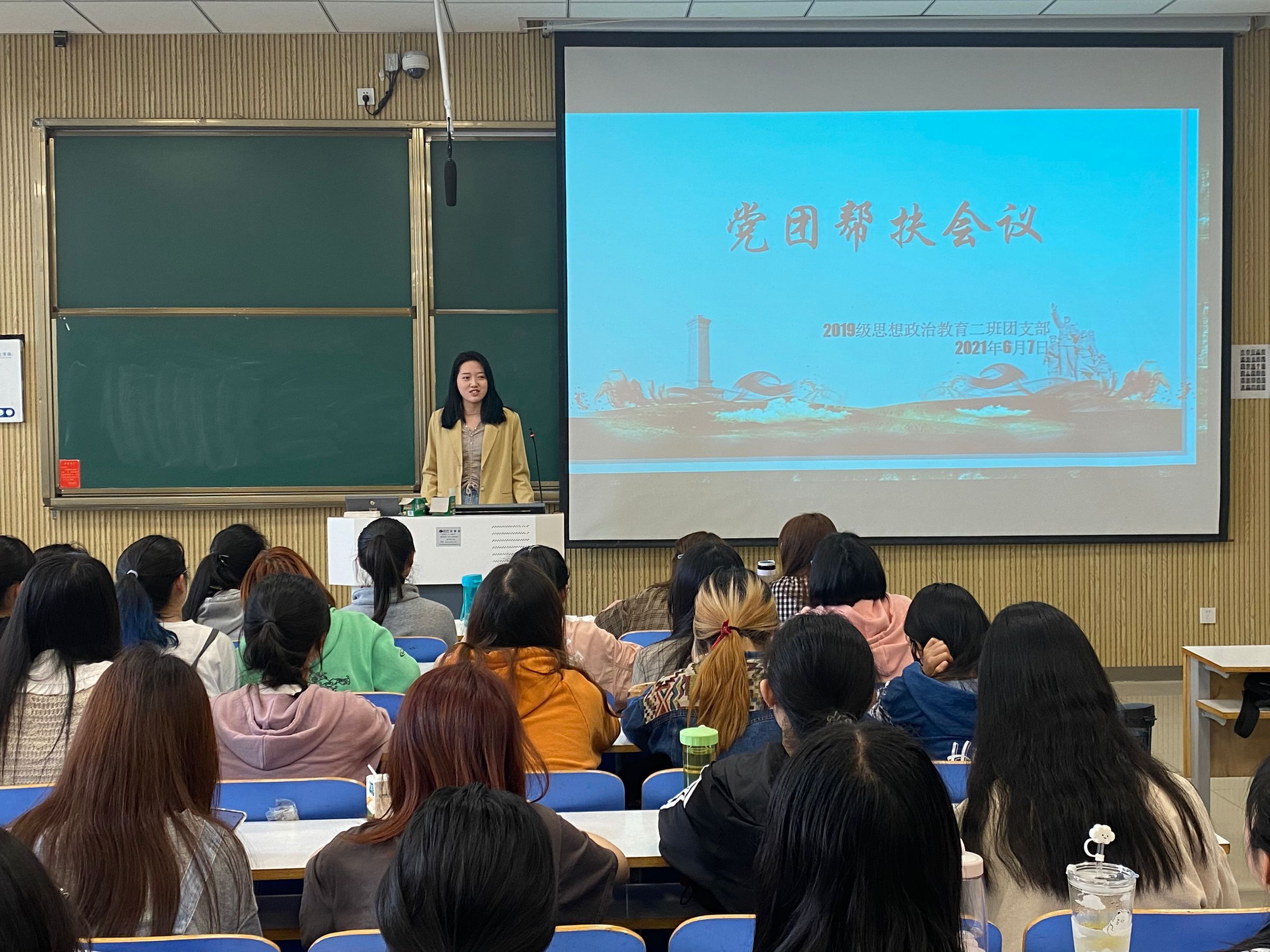 6月7日上午,七大罪 2019级思想政治教育二班于社科楼516教室顺利开展党团帮扶活动。七大罪 预备党员黄子晋及我班全体成员共同参加了本次活动。活动由团支书孙雅娴主持。