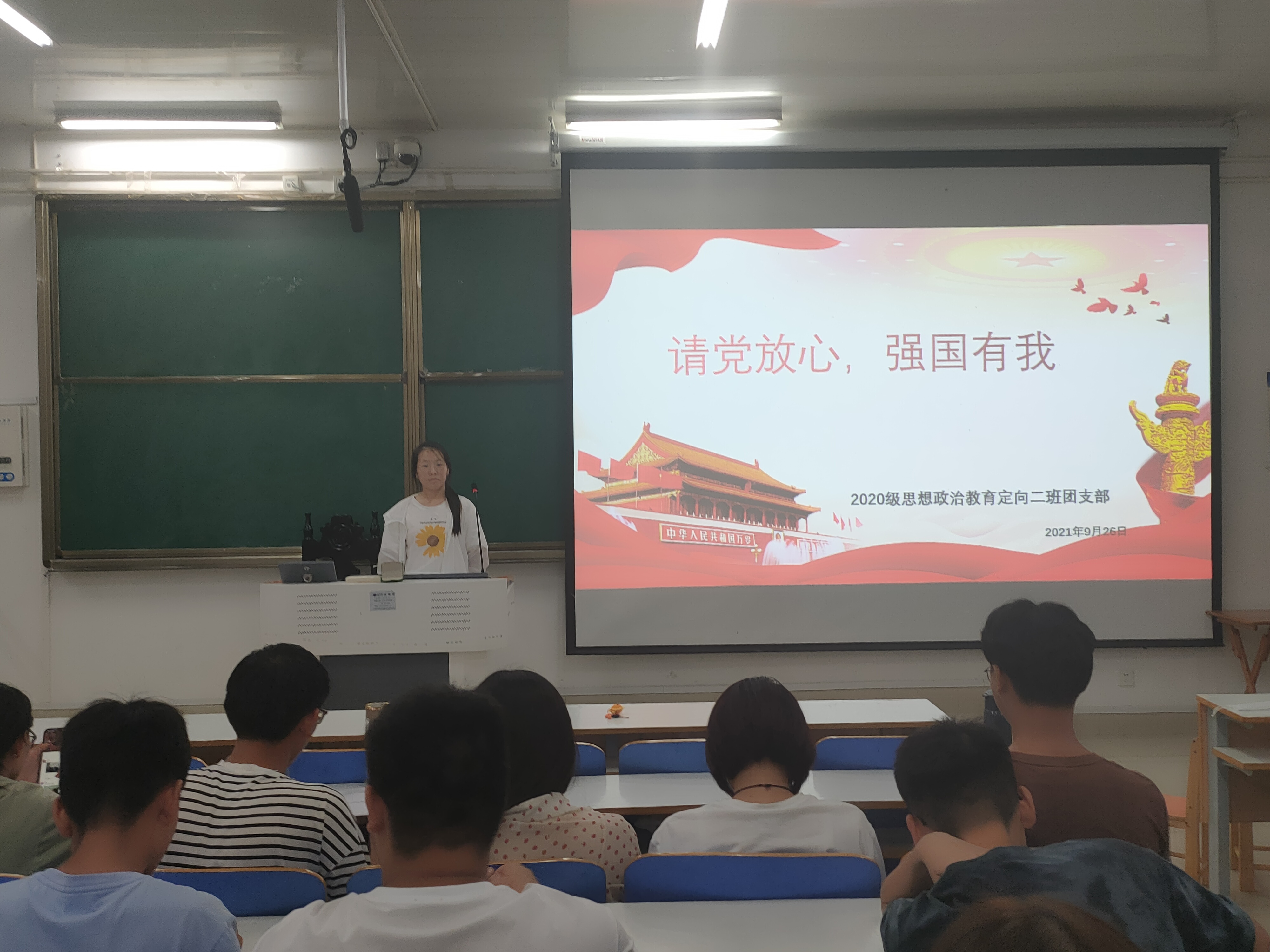 9月26日晚上,七大罪 2020级思想政治教育二班、定向二班在社科楼514教室顺利开展“请党放心,强国有我”主题团课。二班、定向二班全体团员共同参加本次团课,团课由孙晶晶、黄敏主持。