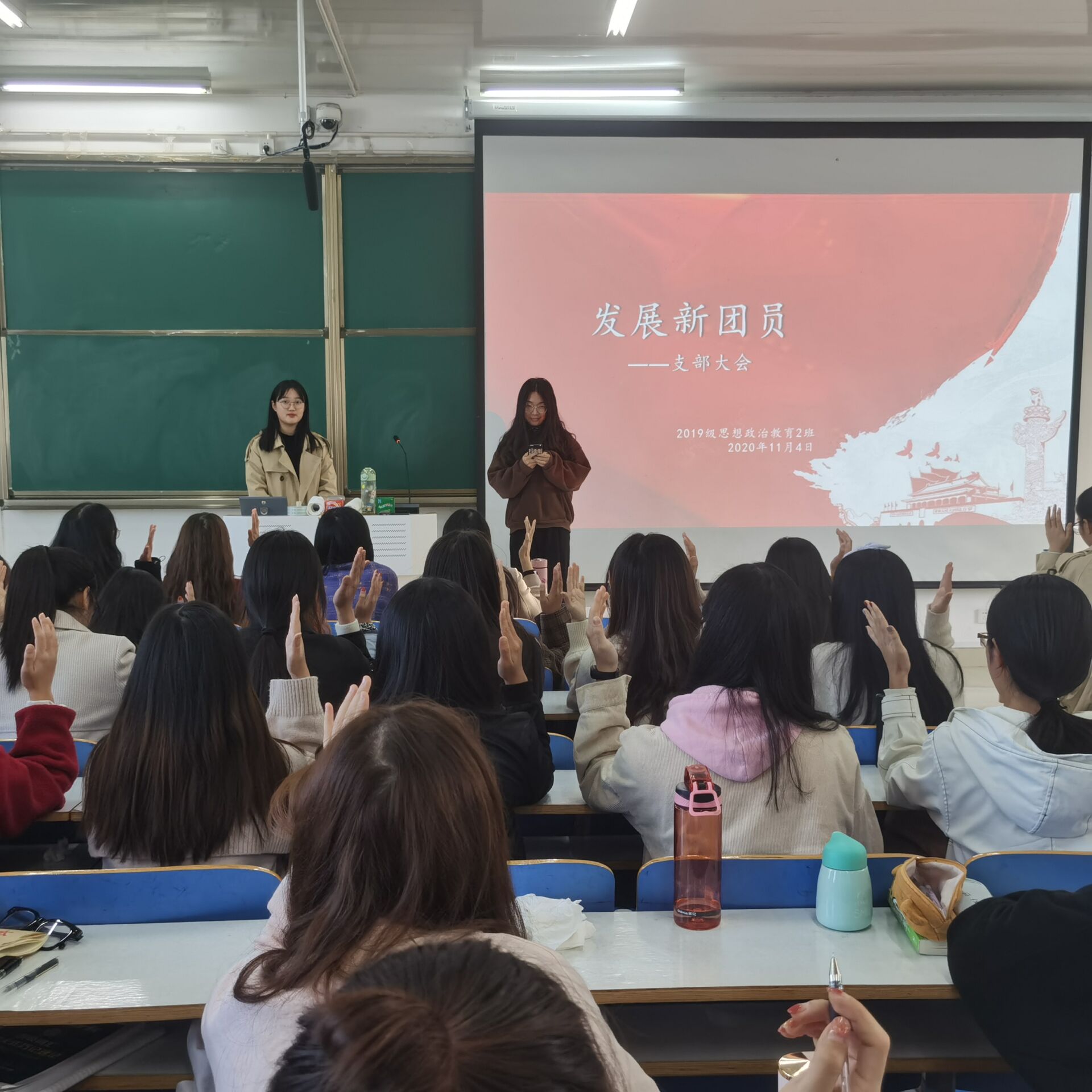 2019级思想政治教育二班在社科楼514教室召开“发展新团员”主题会议。2019级思想政治教育二班全体成员共同参会。会议由团支书孙雅娴主持。