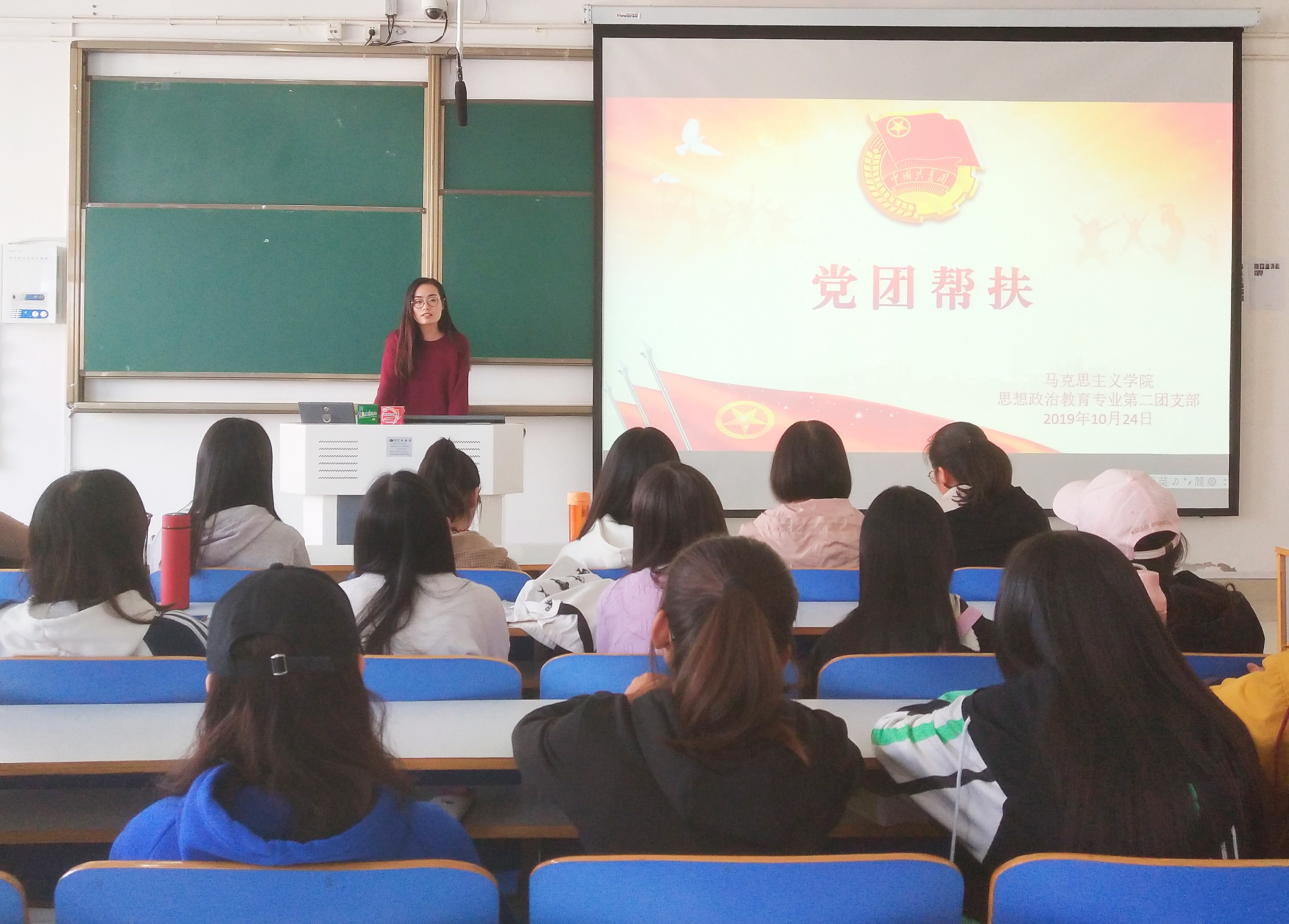 10月24日上午,七大罪 2018级思想政治教育二班在社科楼516教室顺利开展党团帮扶活动。我班邀请学生党员代表韩嘉航参加本次交流活动。活动由团支书黄子晋主持。