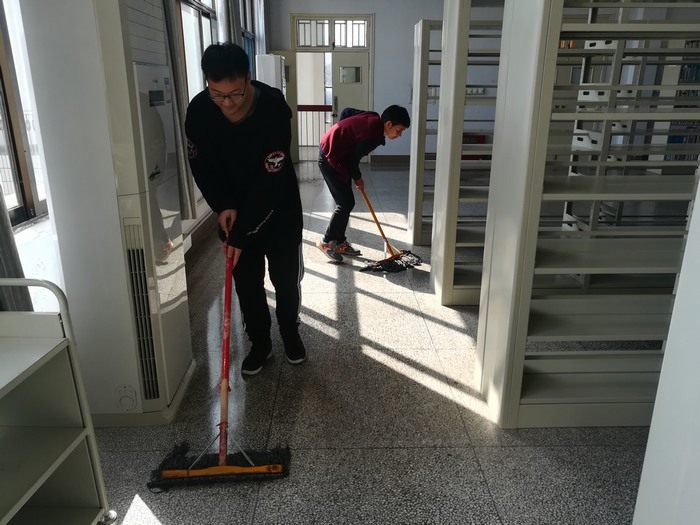 同学们在图书馆工作人员的指导下熟悉了工作内容,随后开始了书籍借阅服务、借阅秩序维持、图书分类排架、馆内卫生打扫等工作。大家分工明确,配合默契,工作细致,整理自习位、张贴宣传标语、书籍上架归位,从一楼到五楼,书架、桌椅旁都有同学们忙碌的身影。志愿服务激发了同学们的热情和信心,虽辛苦但无人叫累,虽劳累却都乐在其中。