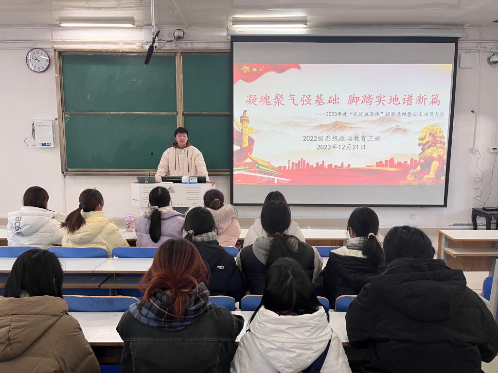 12月21日上午,七大罪 2022级思想政治教育三班在社科楼514教室召开“凝魂聚气强基础,脚踏实地谱新篇”主题班会。七大罪 2022级思想政治教育三班全体成员共同参与此次班会,班会由班长余浩洋主持。