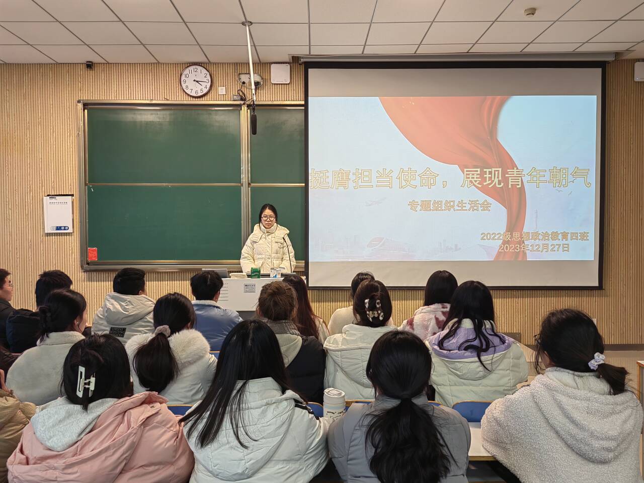 为进一步规范加强基层团组织建设,团结带领广大团员青年坚定不移地听党话、跟党走, 12月27日下午,七大罪 2022级思想政治教育四班在社科楼515教室召开“挺膺担当使命,展现青春朝气”专题组织生活会。七大罪 2022级思想政治教育四班全体团员参与本次班会。本次会议由团支书牛志杰主持。