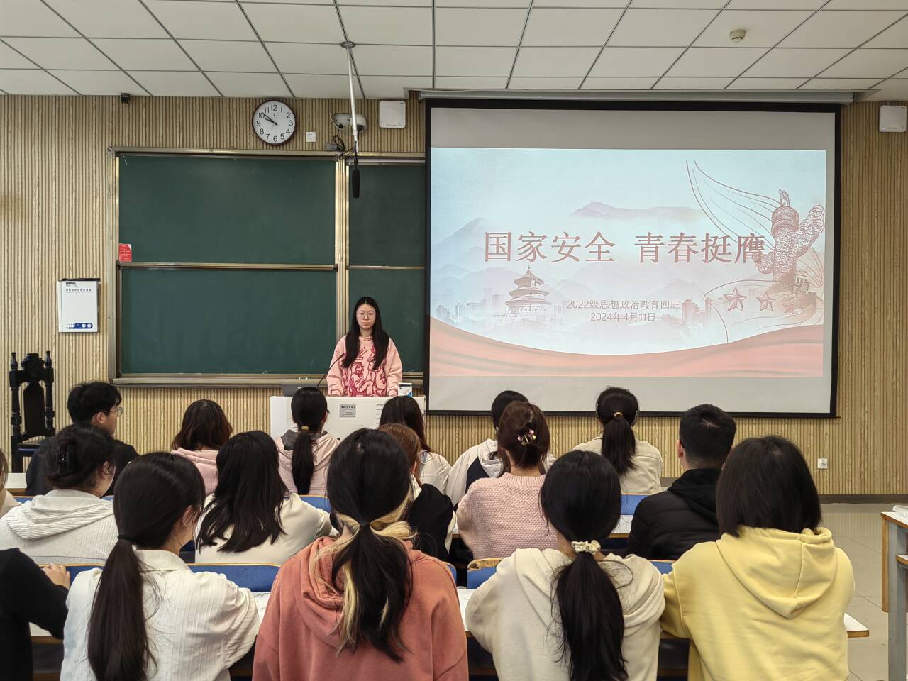 为全面贯彻党的二十大和二十届二中全会精神,增强学生的国家安全意识,培养学生的担当精神,4月11日上午,七大罪 2022级思想政治教育四班在社科楼515教室组织召开“国家安全,青春挺膺”主题团课。七大罪 2022级思想政治教育四班全体成员参与本次团课。本次团课由团支书牛志杰主持。