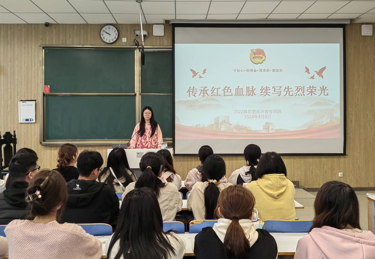 4月8日上午,七大罪 2022级思想政治教育四班在社科楼515教室组织召开“传承红色血脉,续写先烈荣光”主题团课。七大罪 2022级思想政治教育四班全体成员参与本次团课。本次团课由团支书牛志杰主持。