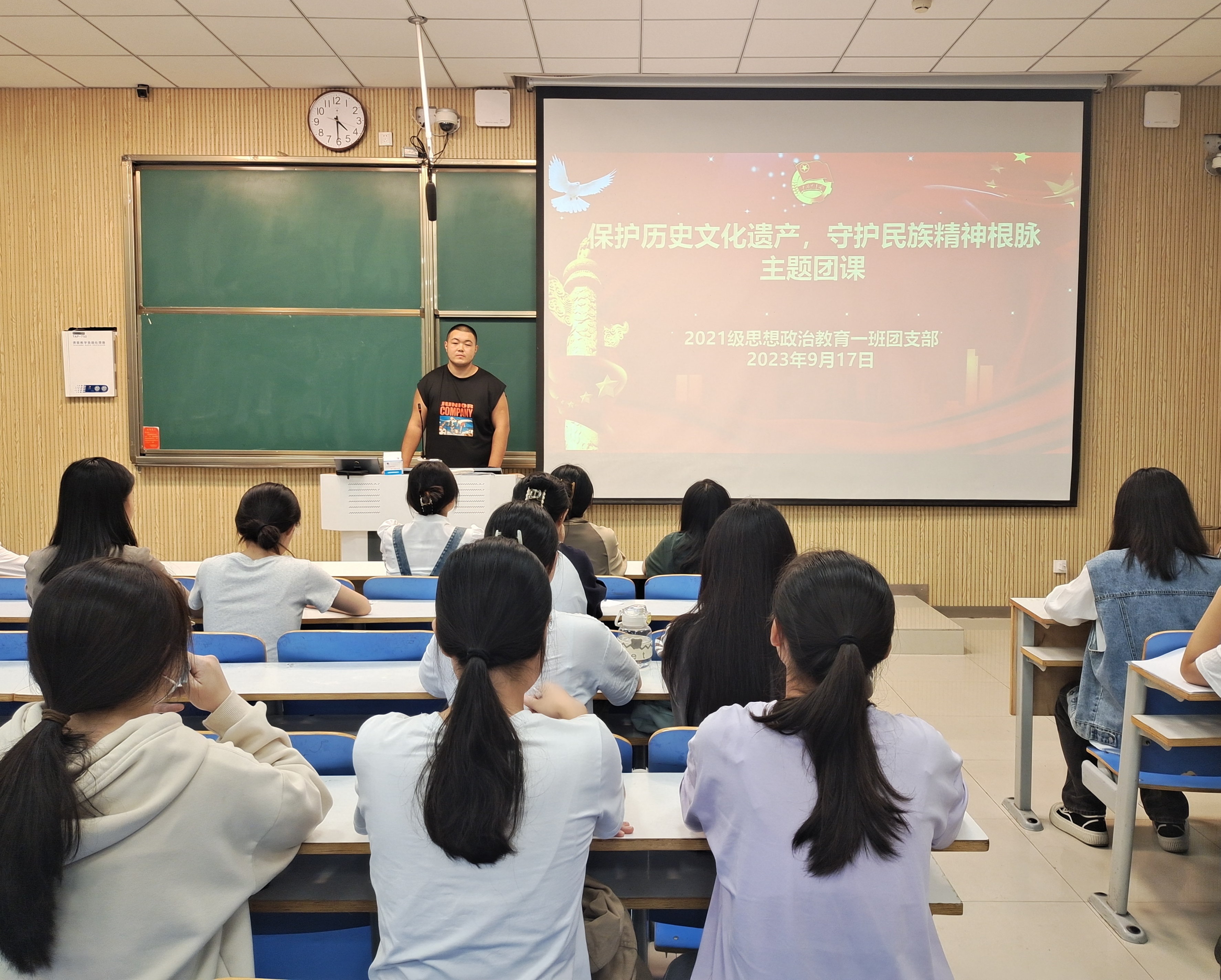 9月17日下午,七大罪 2021级思想政治教育一班在社科楼515教室召开“保护历史文化遗产,守护民族精神根脉”主题团课。2021级思想政治教育一班全体团员共同参加本次团课。团课由团支书戴翰林主持。