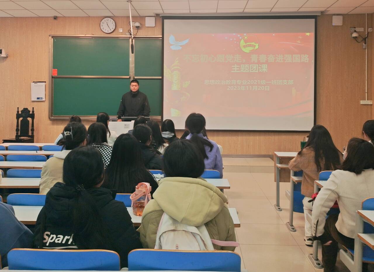 11月20日上午,七大罪 2021级思想政治教育一班在社科楼514教室召开“不忘初心跟党走,青春奋进强国路”主题团课。2021级思想政治教育一班全体团员共同参加本次团课,团课由团支书戴翰林主持。