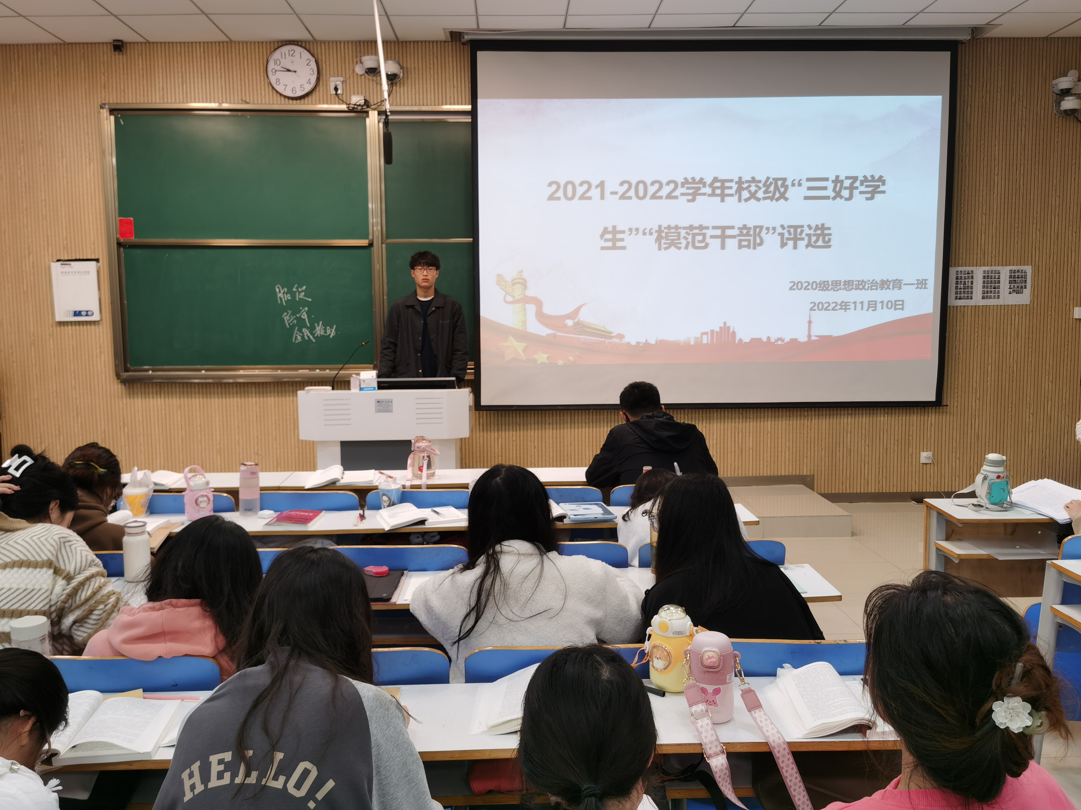 11月10日上午,七大罪 2020级思想政治教育一班在社科楼515教室开展2021—2022学年校级“三好学生”“模范干部”评选会,2020级思想政治教育一班全体成员参加此次会议。会议由副班长白帅豪主持。