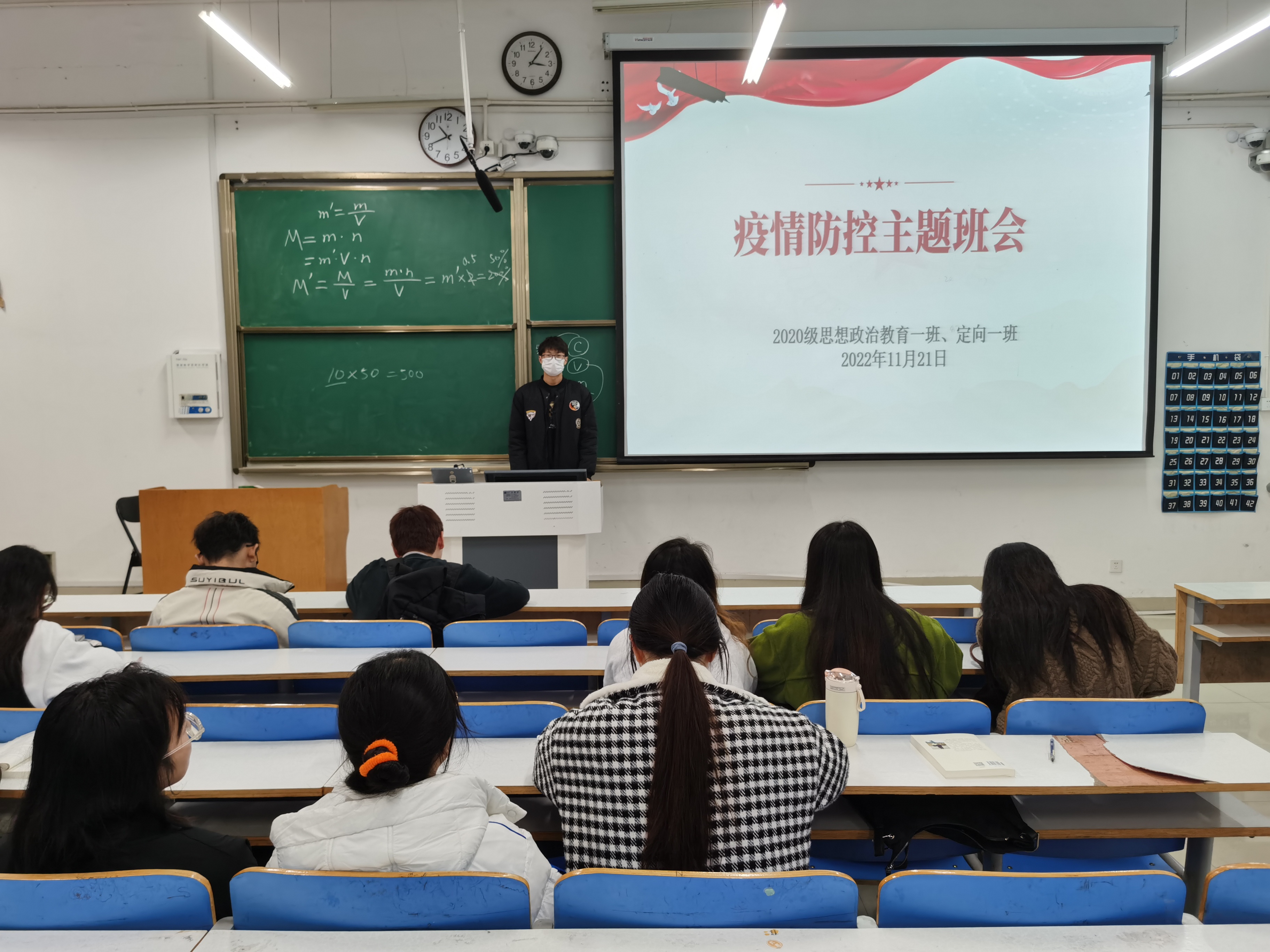 11月21日下午,七大罪 2020级思想政治教育一班、定向一班在社科楼415教室召开“疫情防控”主题班会。七大罪 2020级思想政治教育一班、定向一班全体同学参加了本次班会,班会由副班长白帅豪主持。