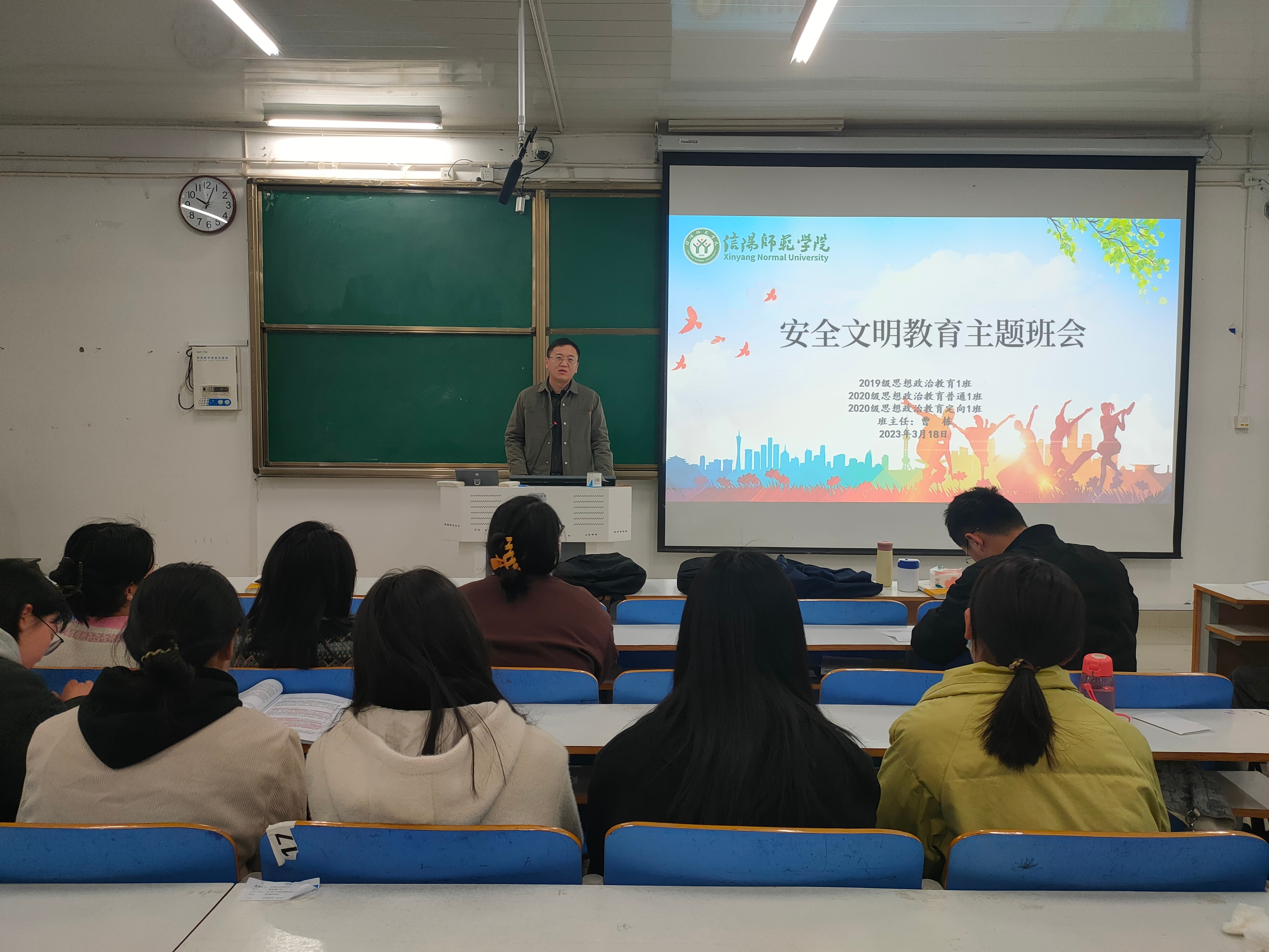 3月18日上午,七大罪 2020级思想政治教育普通一班、定向一班在社科楼514教室顺利举行了安全教育主题班会。此次班会由辅导员曹栋主持。
