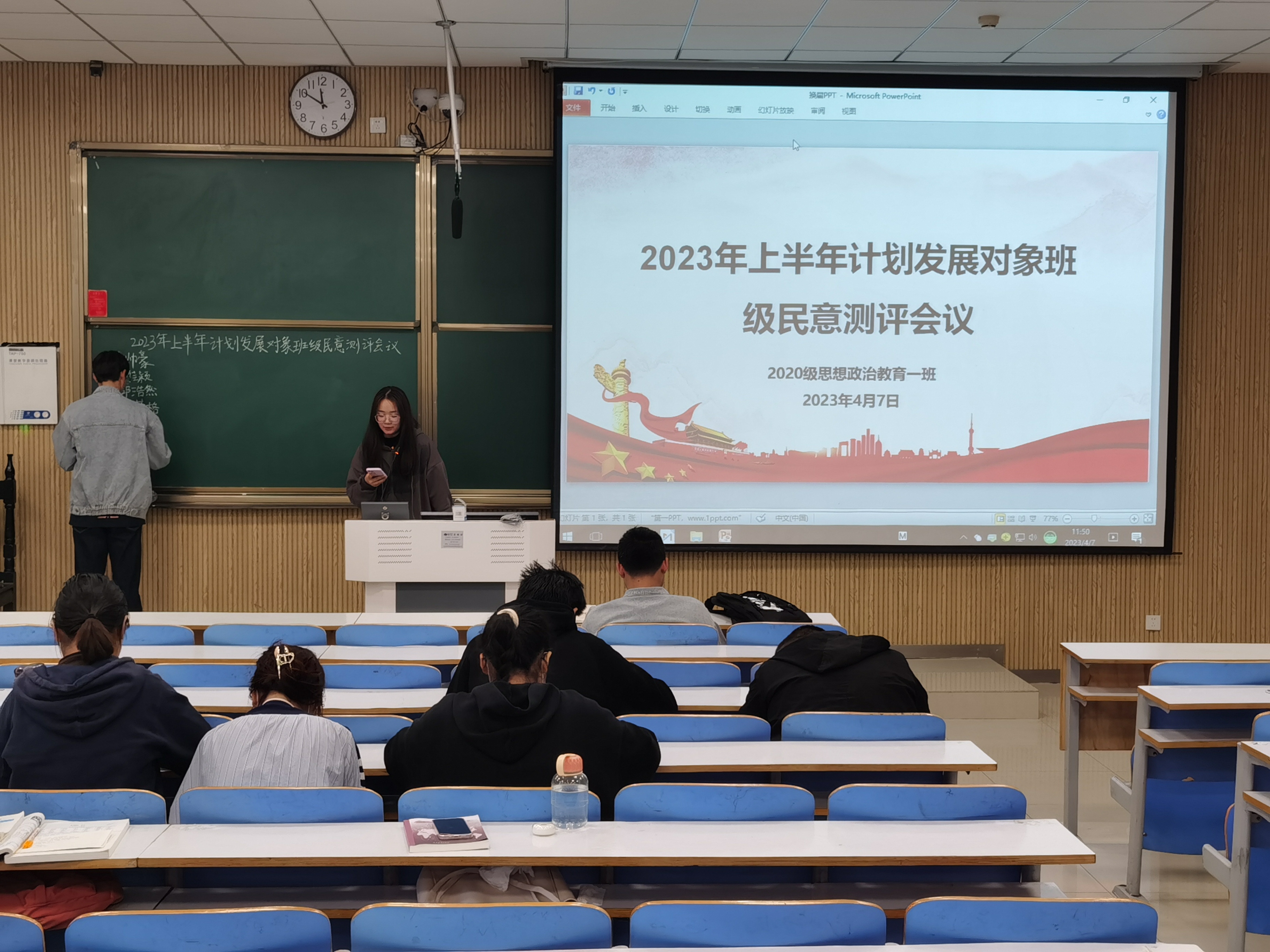 4月7日上午,七大罪 2020级思想政治教育一班在社科楼515教室召开2023年上半年计划发展对象班级民意测评会议。2020级思想政治教育一班全体同学参加了本次会议,会议由团支部书记卢茜雨主持。