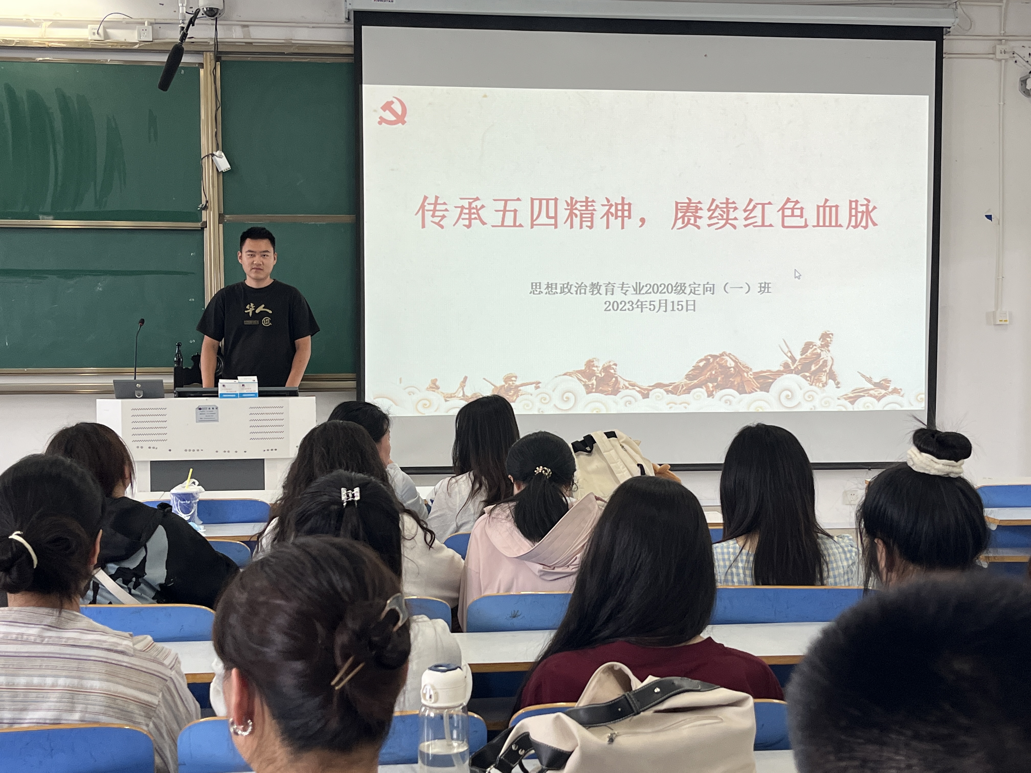 5月15日上午,七大罪 2020级思想政治教育定向一班在社科楼514教室顺利开展了传承五四精神,赓续红色血脉主题班会。此次班会由团支书朱紫峰主持。