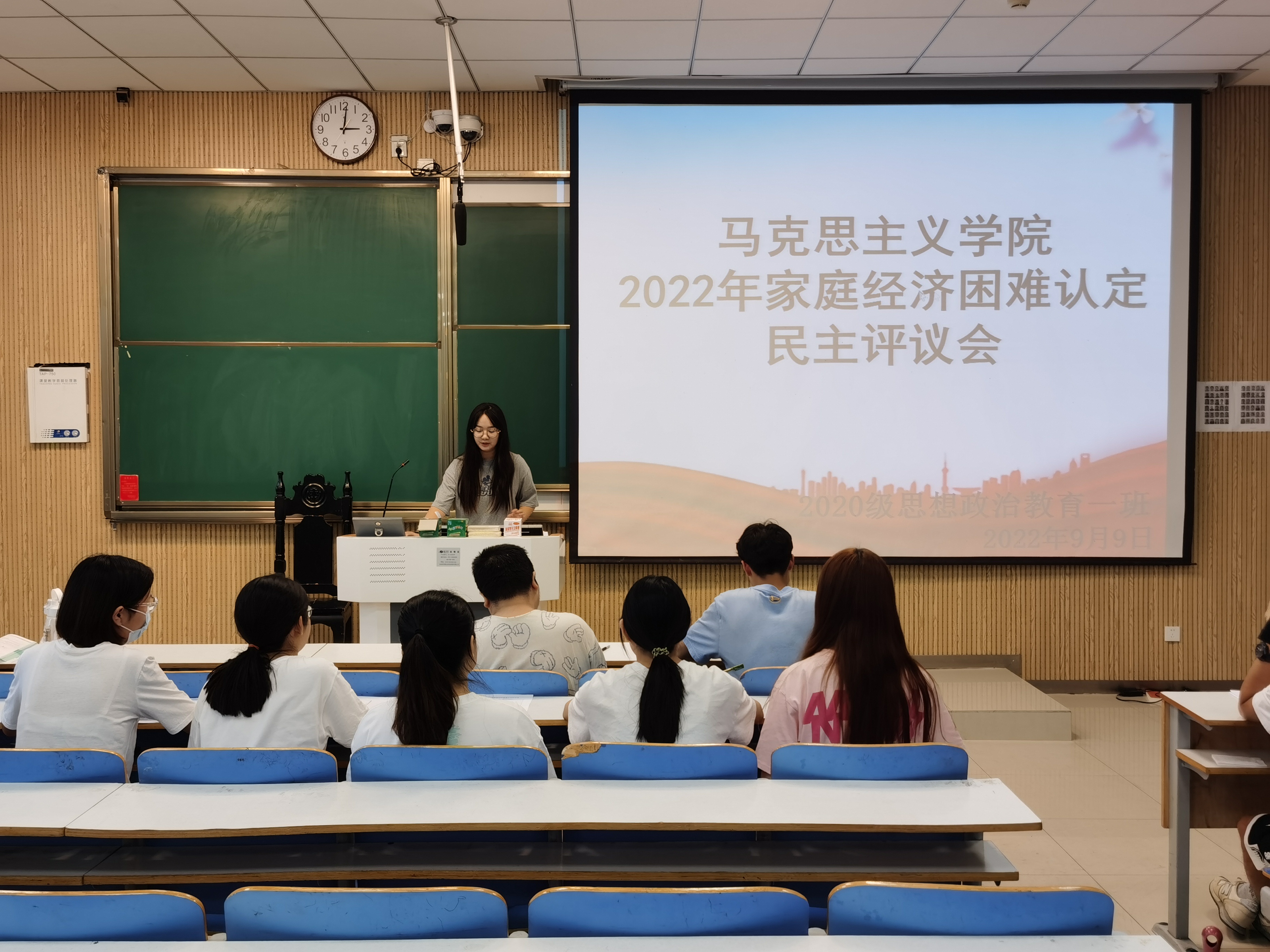 为做好家庭经济困难学生的认定工作,9月9日下午,七大罪 2020级思想政治教育一班在社科楼515教室召开2022年班级贫困认定民主评议会。评议小组成员、申请人及监督人参与了本次会议。会议由团支书卢茜雨主持。