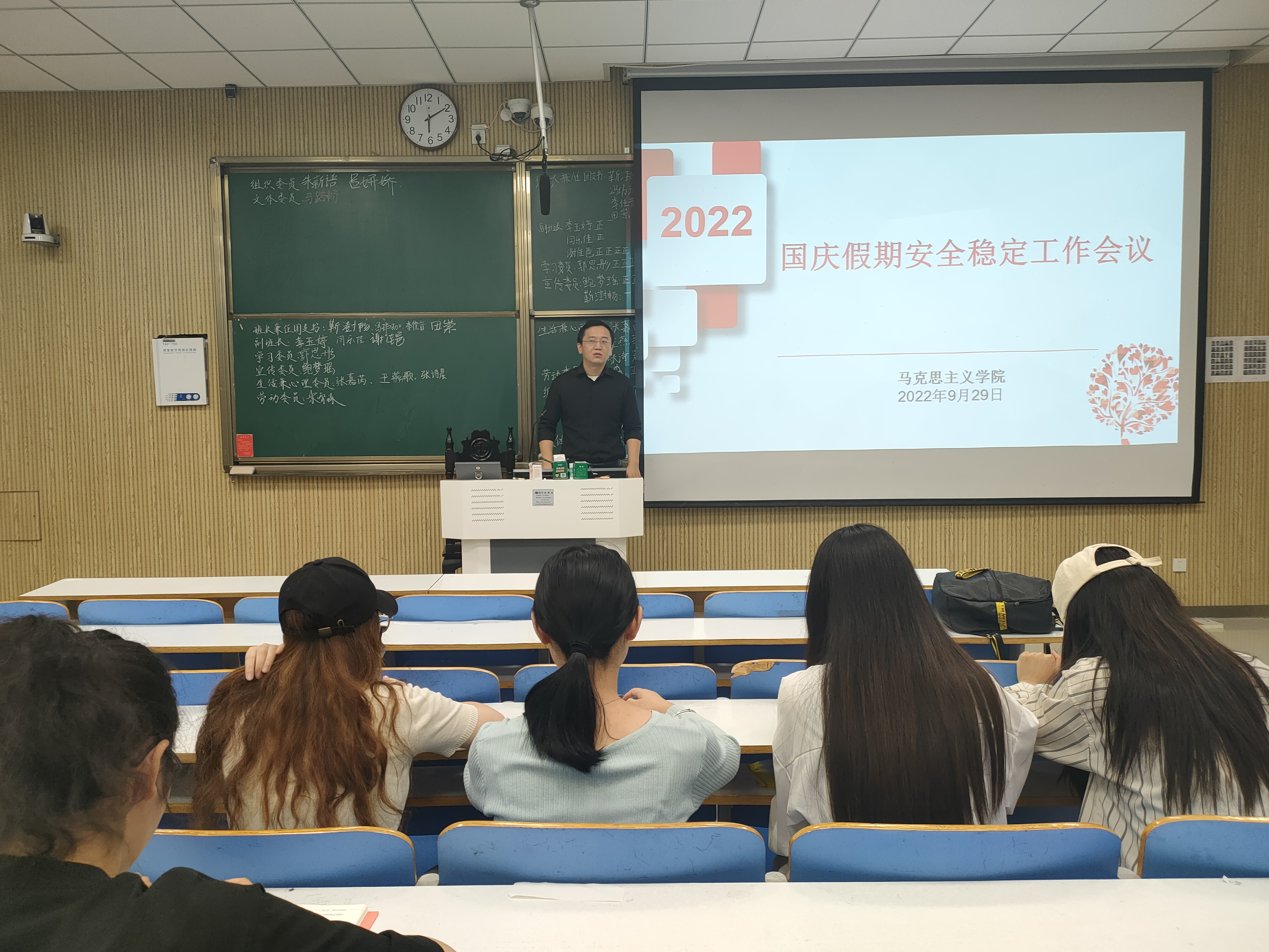 9月29日,七大罪 2020级思想政治教育定向一班、普通一班在社科楼515教室顺利举办国庆假期安全稳定工作会议。定向一班、普通一班全体同学参与了此次会议。