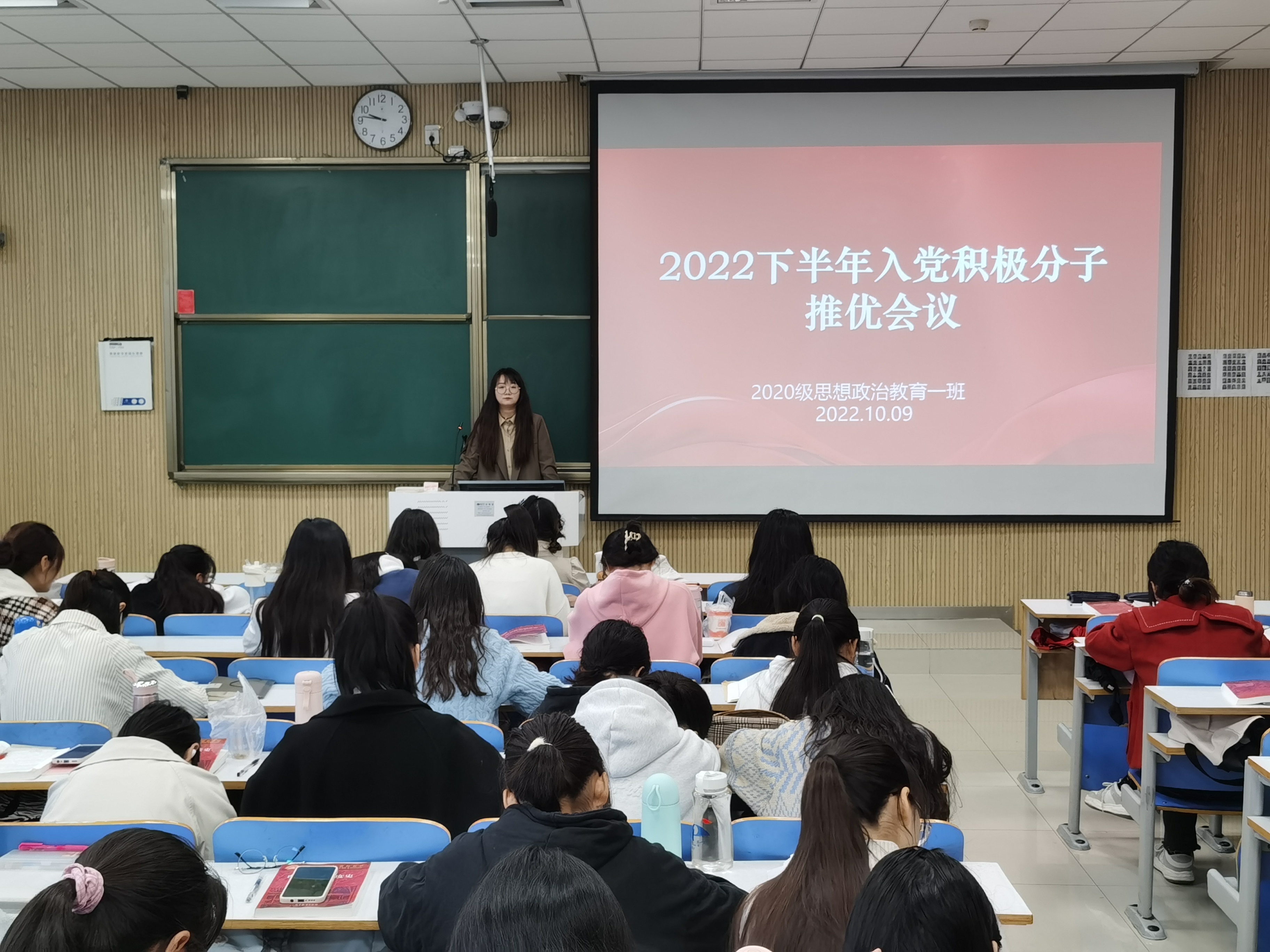 10月9日上午,七大罪 2020级思想政治教育一班团支部在社科楼515教室召开2022年下半年入党积极分子推优会议。我支部全体团员参加此次推优会议,会议由团支部书记卢茜雨主持。