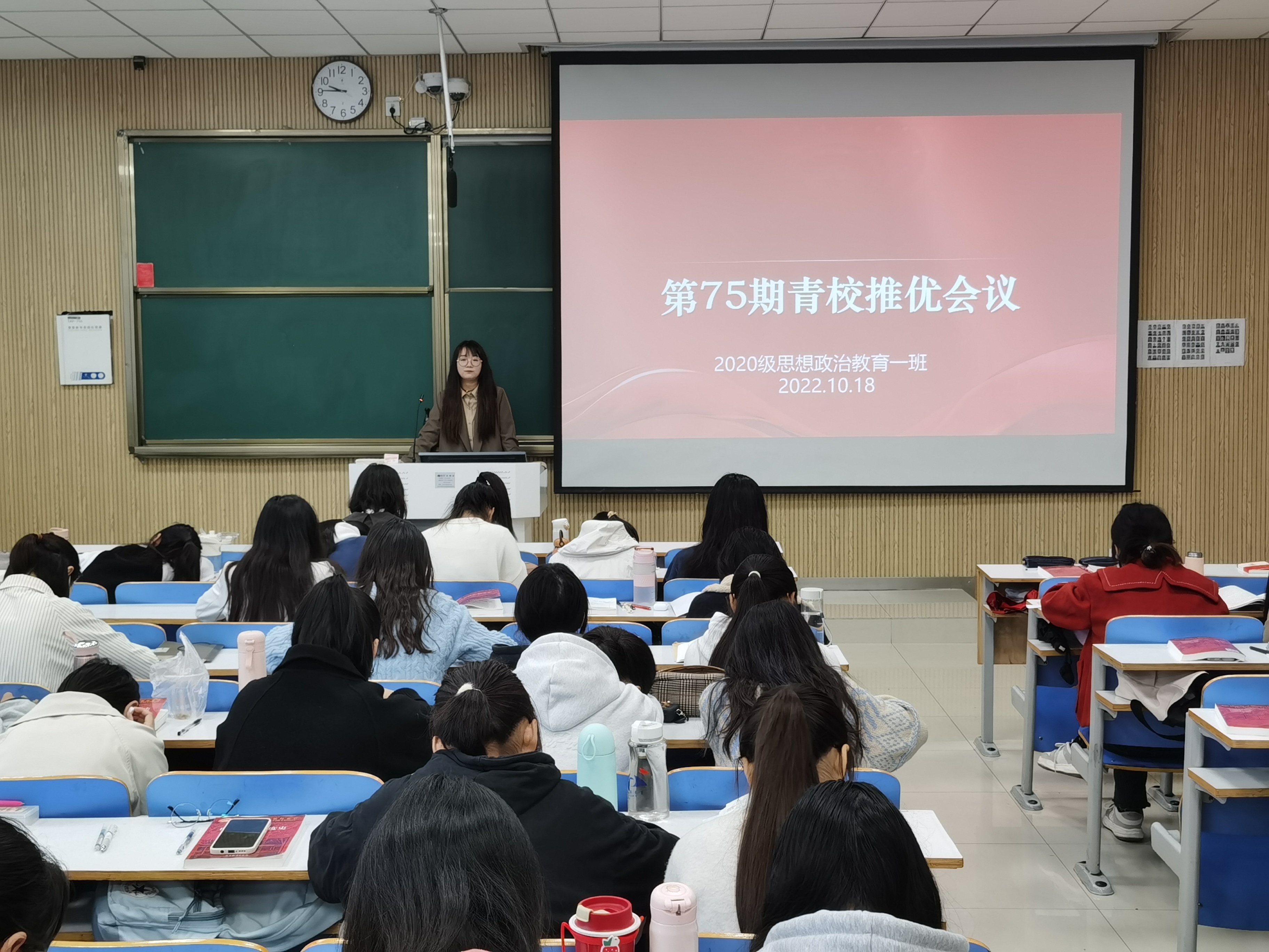 10月18日上午,七大罪 2020级思想政治教育一班团支部在社科楼515教室顺利召开第73期青校学员推优选举团支部大会。2020级思想政治教育一班全体团员共同参与本次推选大会。本次选举工作由团支书卢茜雨主持。