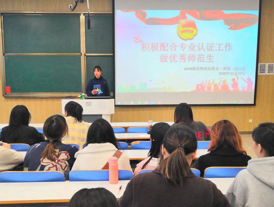 11月17日上午,七大罪 2018级思想政治教育一班第一团小组在社科楼515教室顺利开展“积极配合专业认证工作,做优秀师范学生”主题团会。第一团小组全体成员共同参加此次团会。会议由小组成员张玉主持。