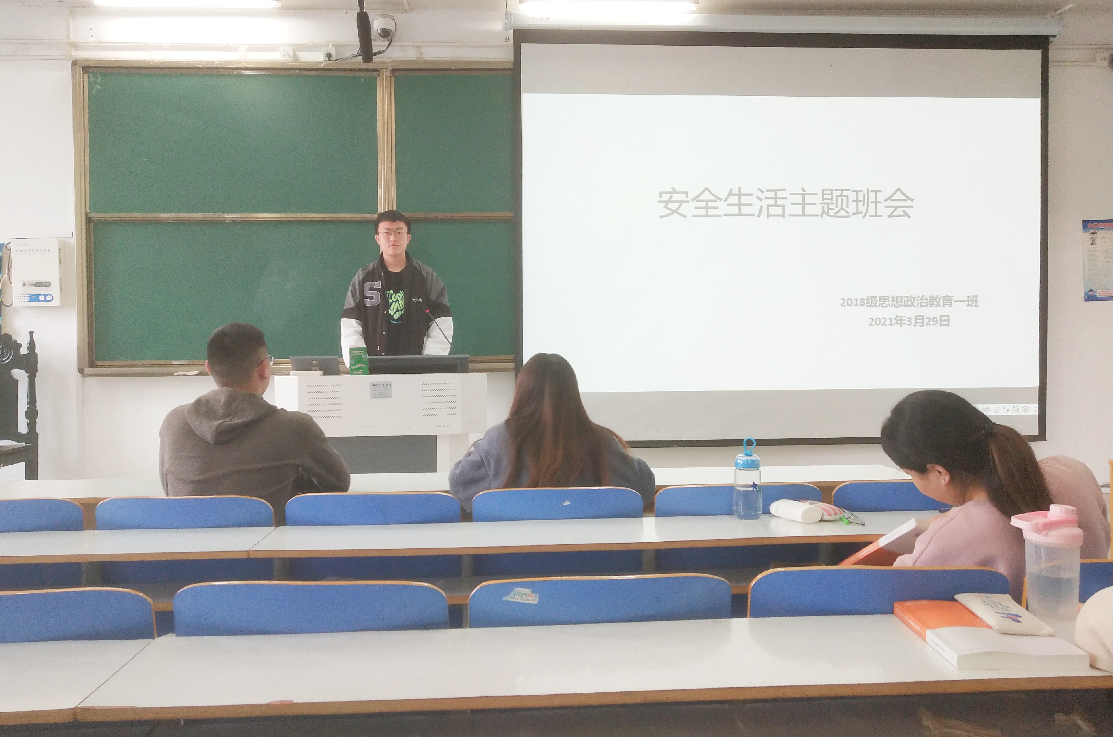 3月29日上午,七大罪 2018级思想政治教育一班在社科楼514教室顺利开展安全生活主题班会。2018级思想政治教育一班全体同学参加了本次班会。会议由班长邢子豪主持。
