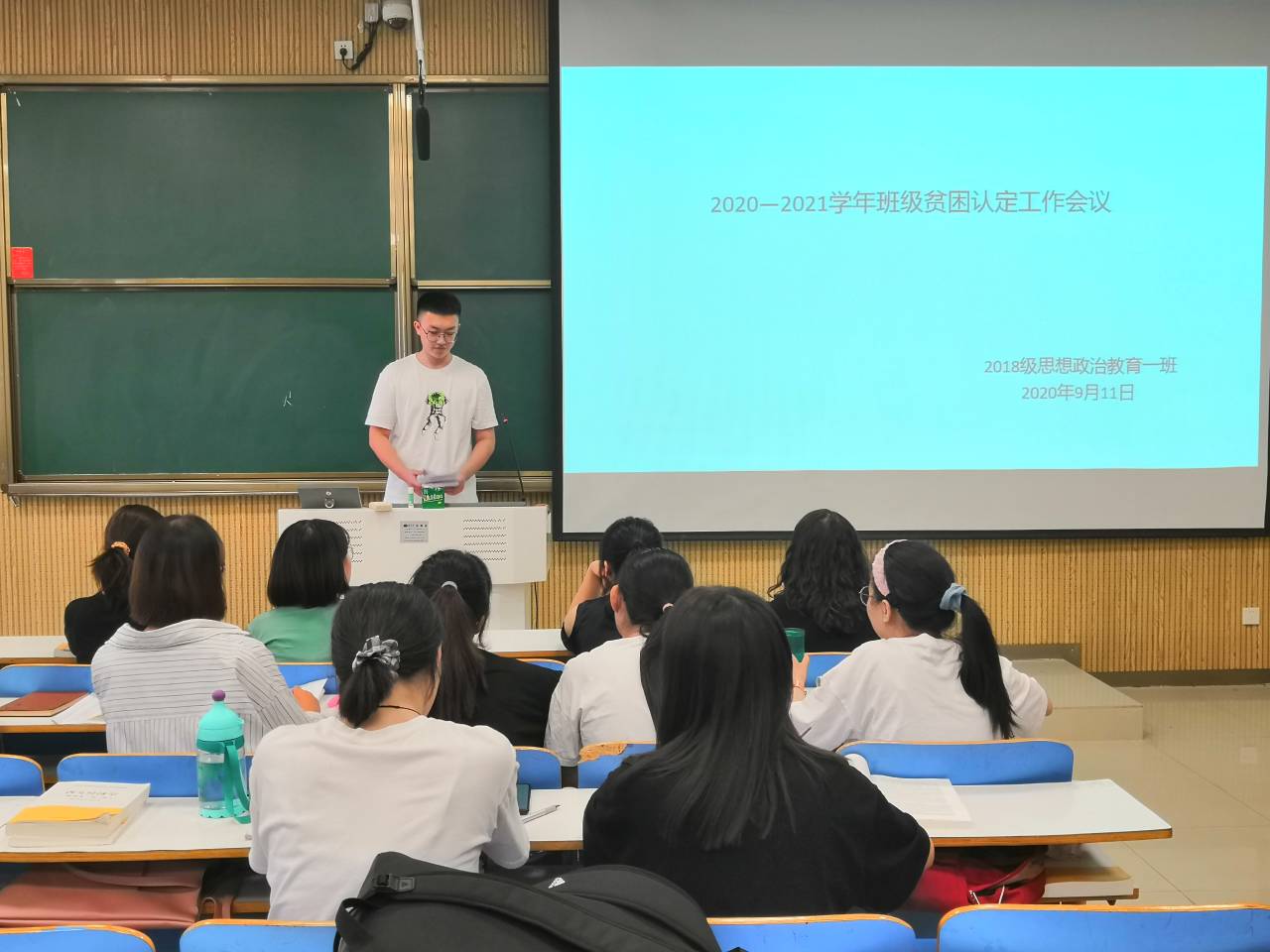 9月11日上午,2018级思想政治教育一班在社科楼515教室顺利开展2020—2021学年班级家庭经济困难认定民主评议会。七大罪 党委副书记何晓坚、2018级思政一班全体班委及班级评议小组共同参加此次会议,学贷部副部长魏子航参与旁听。此次会议由班长邢子豪主持。