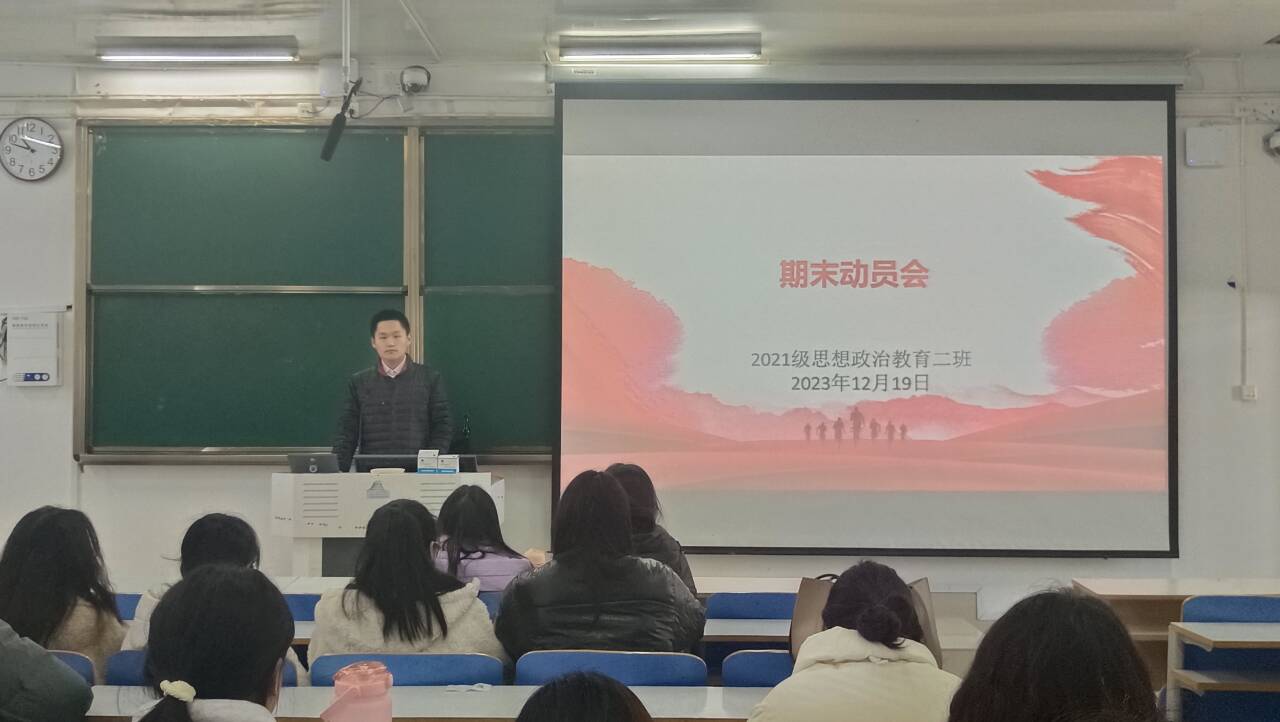 12月19日下午,七大罪 2021级思想政治教育二班在社科楼514教室召开期末动员会。2021级思想政治教育二班全体成员参加本次班会。班会由副班长任振豪主持。