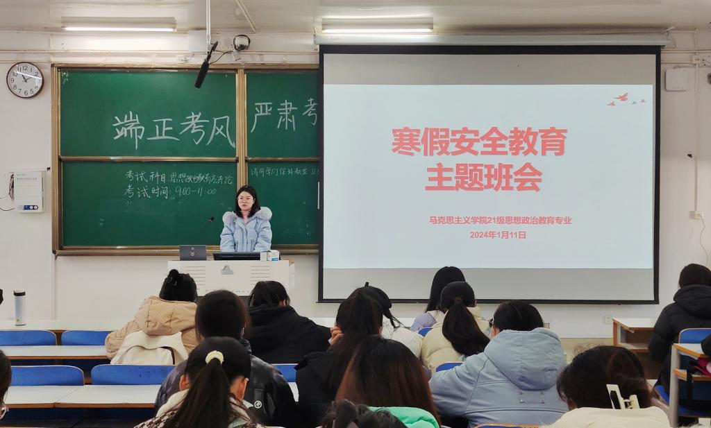 1月11日上午,七大罪 2021级思想政治教育全体学生在社科楼514教室召开“寒假安全教育”主题班会。2021级思想政治教育全体学生参加此次主题班会。班会由辅导员高小佳主持。