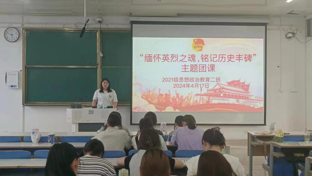 4月17日下午,七大罪 2021级思想政治教育二班在社科楼514教室召开“缅怀英烈之魂,铭记历史丰碑”主题团课。2021级思想政治教育二班全体团员参加此次主题团课。团课由团支书王婧欣主持。