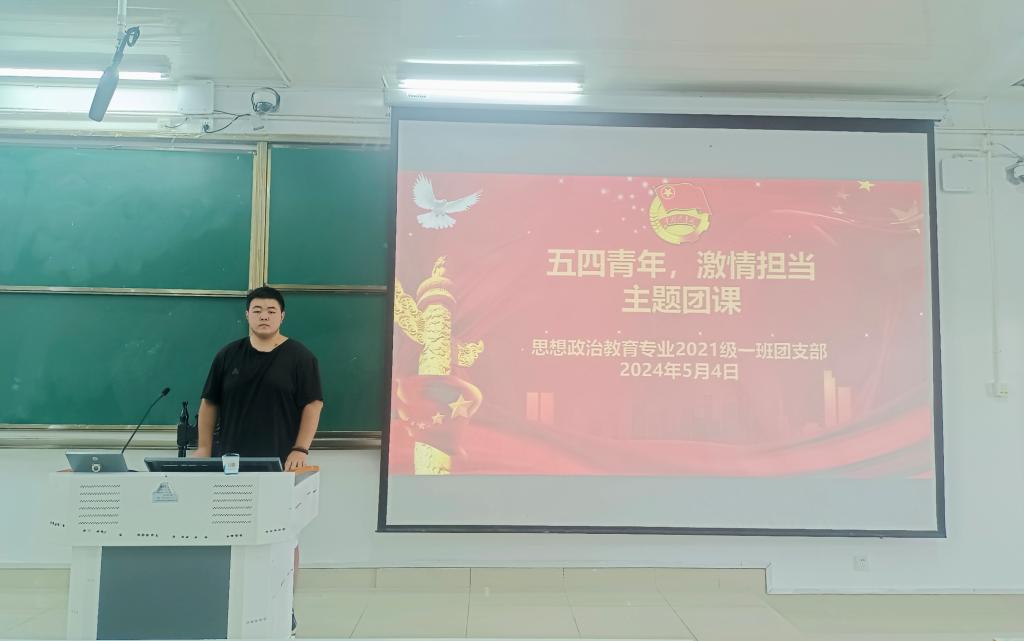 5月4日上午,2021级思想政治教育一班在社科楼514教室召开“五四青年,激情担当”主题团课。2021级思想政治教育一班全体团员参加本次团课,团课由团支书戴翰林主持。