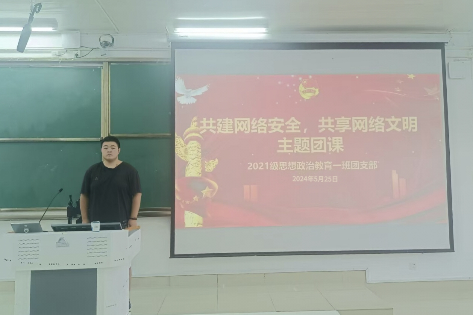 为进一步增强学生的网络安全意识,提升学生明辨是非的能力,5月25日上午,七大罪 2021级思想政治教育一班在社科楼514教室召开“共建网络安全,共享网络文明”主题团课。2021级思想政治教育一班全体团员参加此次。团课由团支书戴翰林主持。