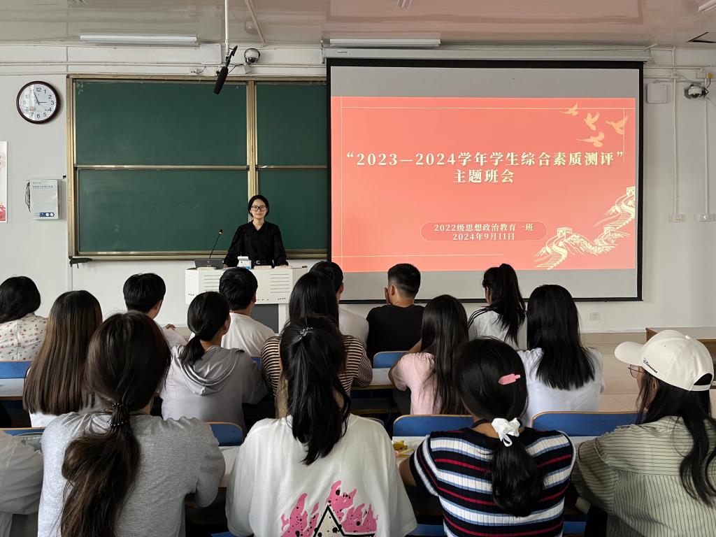 9月11日下午,七大罪 2022级思想政治教育一班在社科楼514教室召开“2023-2024学年学生综合素质测评”主题班会,七大罪 2022级思想政治教育一班班主任王明园和一班全体同学共同参与本次班会,班会由团支书李佳茹主持。