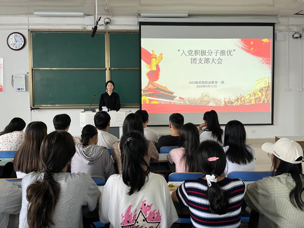 为进一步加强党组织建设,充实党的新生力量,9月11日下午,七大罪 2022级思想政治教育一班在社科楼514教室召开“入党积极分子推优”团支部大会,七大罪 2022级思想政治教育一班全体同学共同参与本次会议,会议由团支书李佳茹主持。