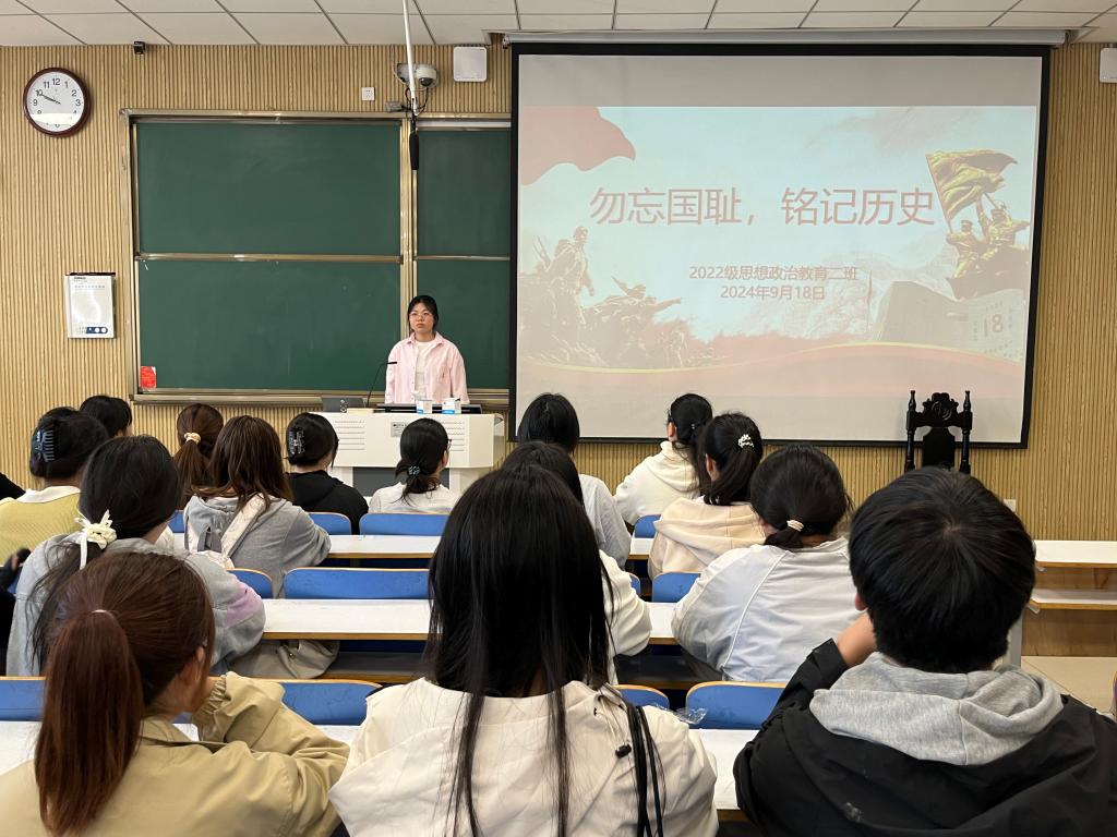为铭记历史、缅怀先烈,弘扬爱国主义精神,9月18日上午,七大罪 2022级思想政治教育二班在社科楼515教室召开“勿忘国耻,铭记历史”主题班会。七大罪 2022级思想政治教育二班全体成员共同参与此次班会。会议由副班长冯伟珈主持。