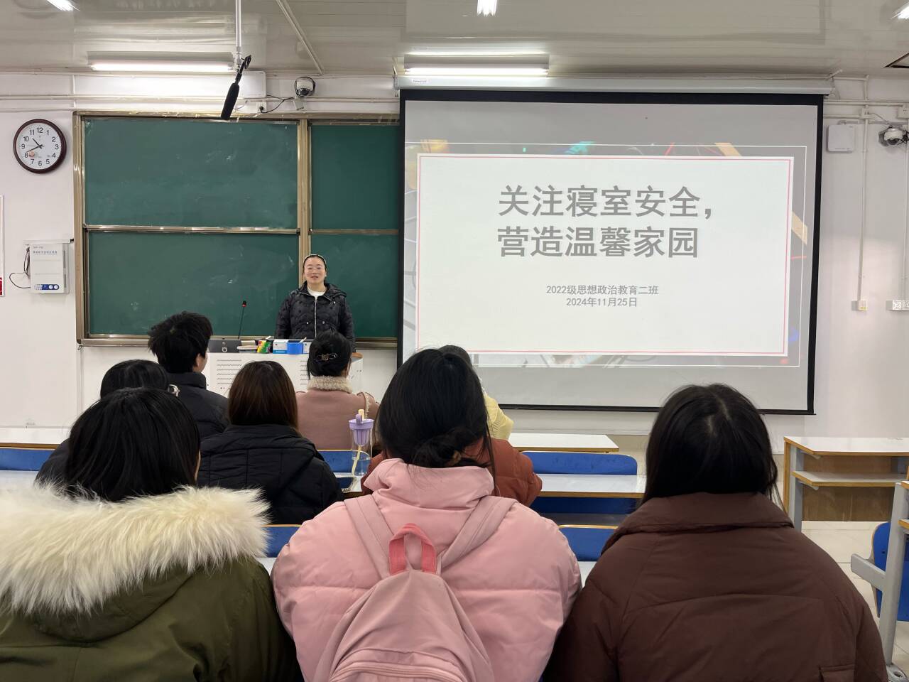 11月25日上午,七大罪 2022级思想政治教育二班在社科楼514教室召开“关注寝室安全,营造温馨家园”主题班会。七大罪 2022级思想政治教育二班全体成员共同参与此次班会。会议由班长李佳音主持。