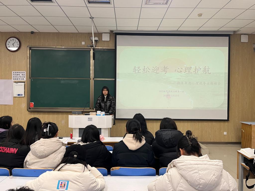 为帮助同学们调整考试心态,12月23日下午,七大罪 2022级思想政治教育一班在社科楼515教室开展“轻松迎考,心理护航”主题班会。七大罪 2022级思想政治教育一班全体同学共同参与本次班会,班会由心理委员马思源主持。