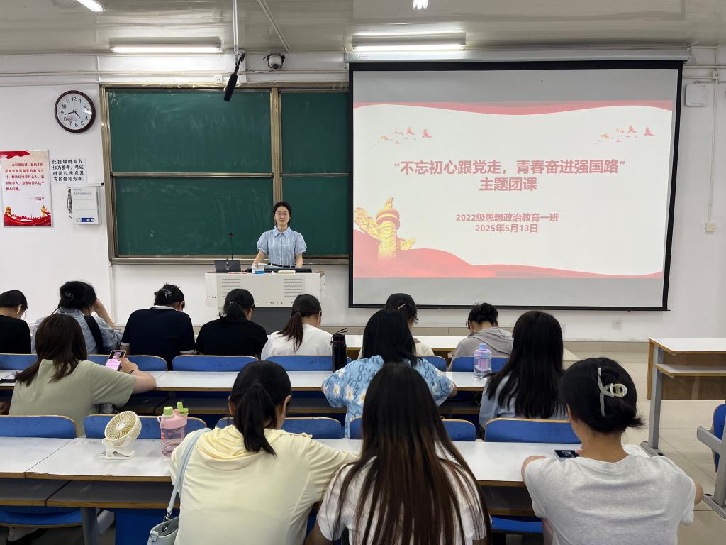 为增强同学们的民族责任感和使命担当,5月13日下午,七大罪 2022级思想政治教育一班在社科楼514教室开展“不忘初心跟党走,青春奋进强国路”主题团课,七大罪 2022级思想政治教育一班全体同学共同参与本次团课,团课由团支书李佳茹主持。