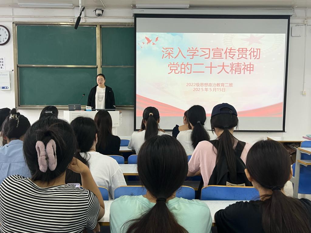 5月15日下午,七大罪 2022级思想政治教育二班在社科楼514教室召开“深入学习贯彻党的二十大精神”主题团日活动。七大罪 2022级思想政治教育二班全体成员共同参与此次团日活动。活动由团支书李佳音主持。