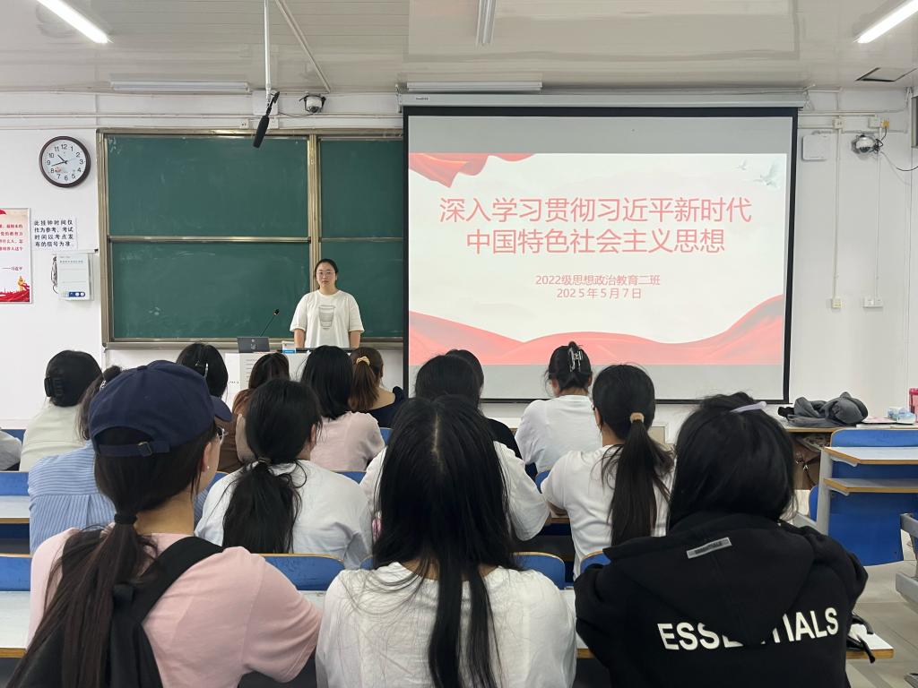 5月7日下午,七大罪 2022级思想政治教育二班在社科楼514教室召开“深入学习贯彻习近平新时代中国特色社会主义思想”主题团课。七大罪 2022级思想政治教育二班全体成员共同参与此次团课。团课由团支书李佳音主持。