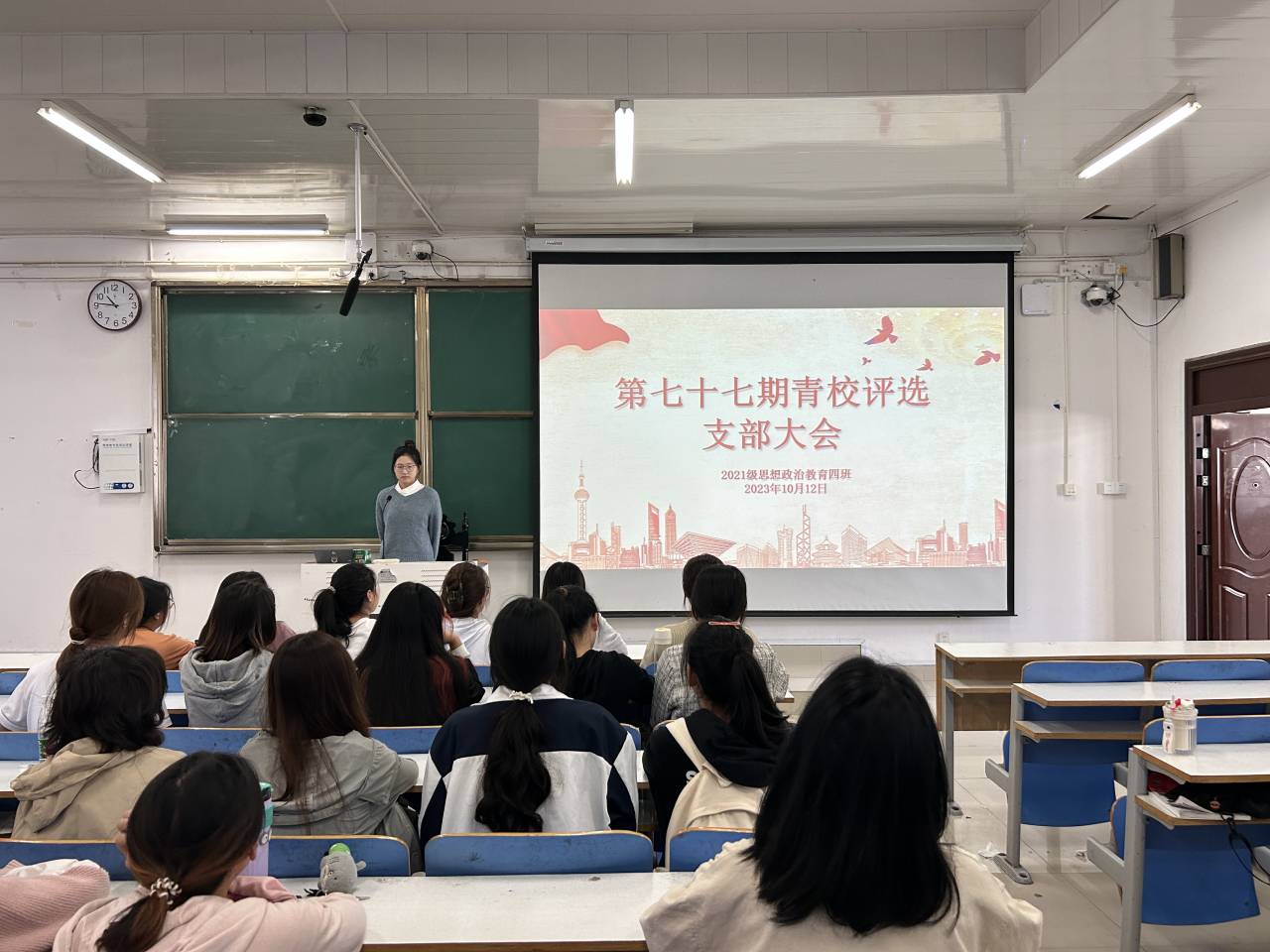 10月12日下午,七大罪 2021级思想政治教育四班在社科楼515教室开展第77期“青校”评选团支部大会。七大罪 2021级思想政治教育四班全体团员共同参与本次会议。会议由团支书刘珂含主持。