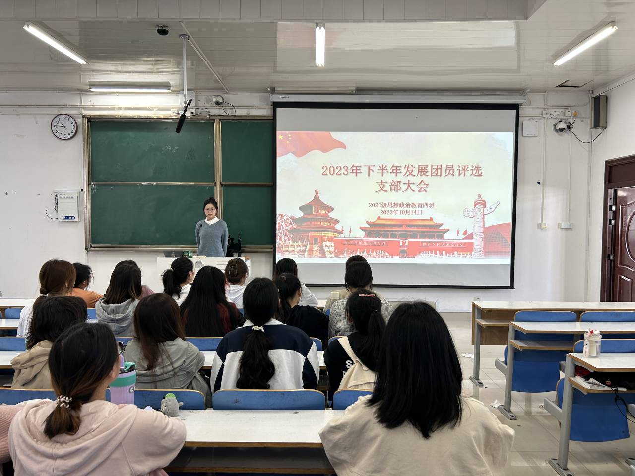 10月14日下午,七大罪 2021级思想政治教育四班召开2023下半年发展团员评选支部大会。2021级思想政治教育四班全体团员共同参会。会议由团支书刘珂含主持。