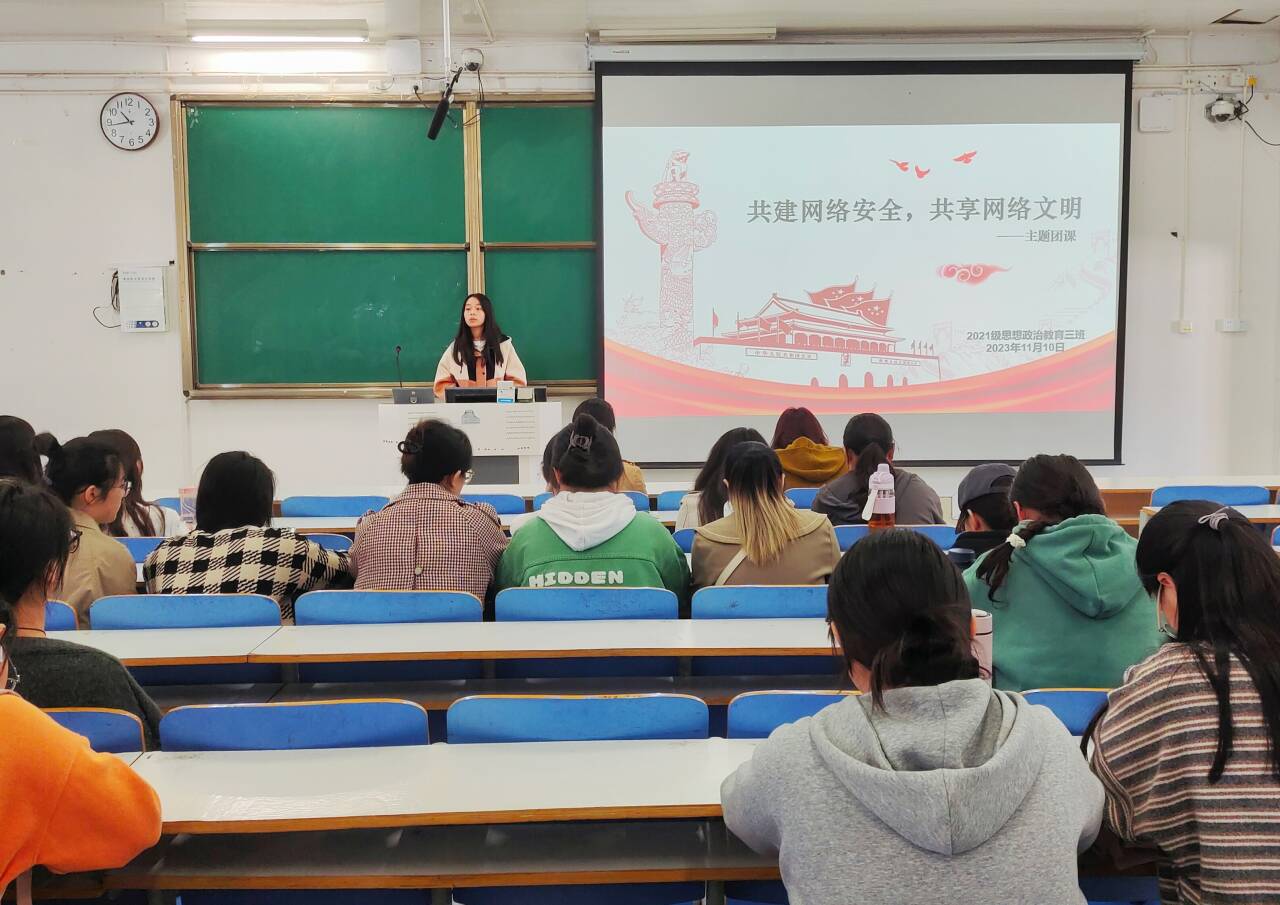 11月10日下午,七大罪 2021级思想政治教育三班在社科楼514召开“共建网络安全,共享网络文明”主题团课。七大罪 2021级思想政治教育三班全体团员参与本次团课。团课由团支书王岚霄主持。