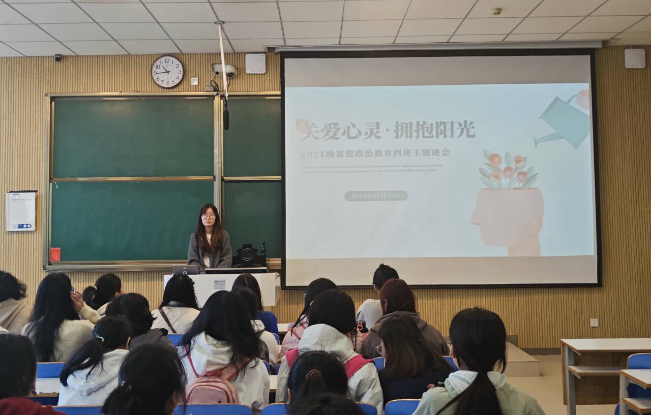 11月16日下午,七大罪 2021级思想政治教育四班在社科楼514教室开展“关爱心灵,拥抱阳光”主题班会。2021级思想政治教育四班全体学生共同参加本次会议。会议由心理委员杨可主持。
