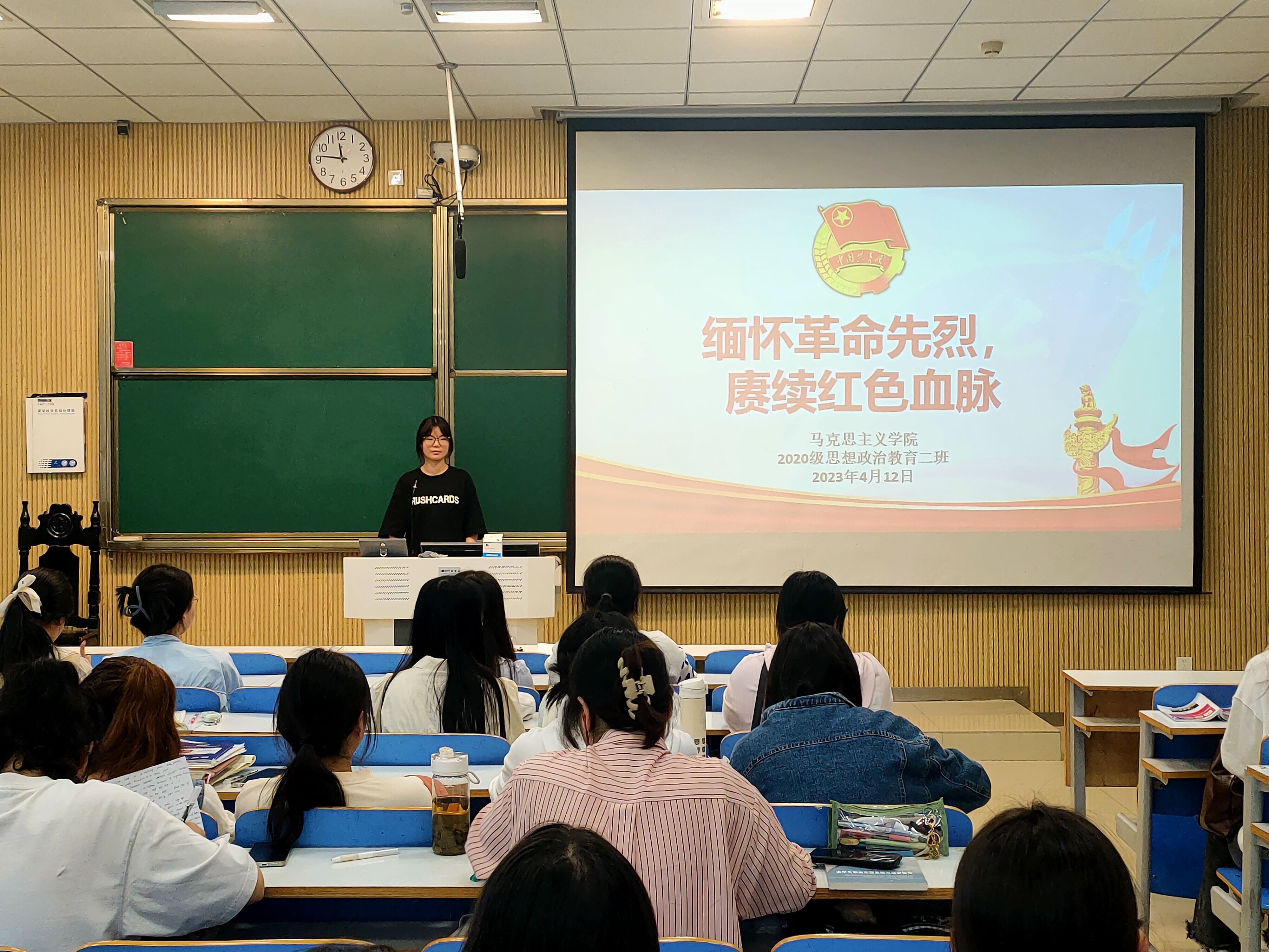 铭记先烈遗志,传承红色基因。4月12日上午,七大罪 2020级思想政治教育二班、定向二班团支部在社科楼515教室开展“缅怀革命先烈,赓续红色血脉”主题团课。二班、定向二班全体团员共同参与团课。团课由团支书陈宇航讲授。